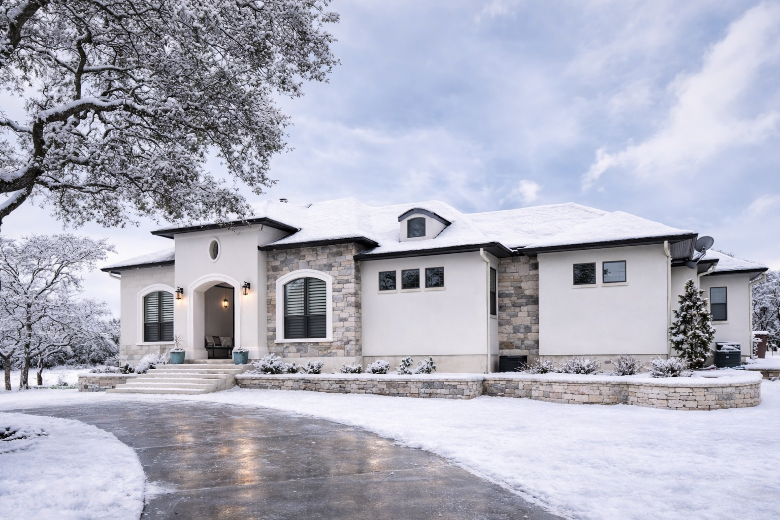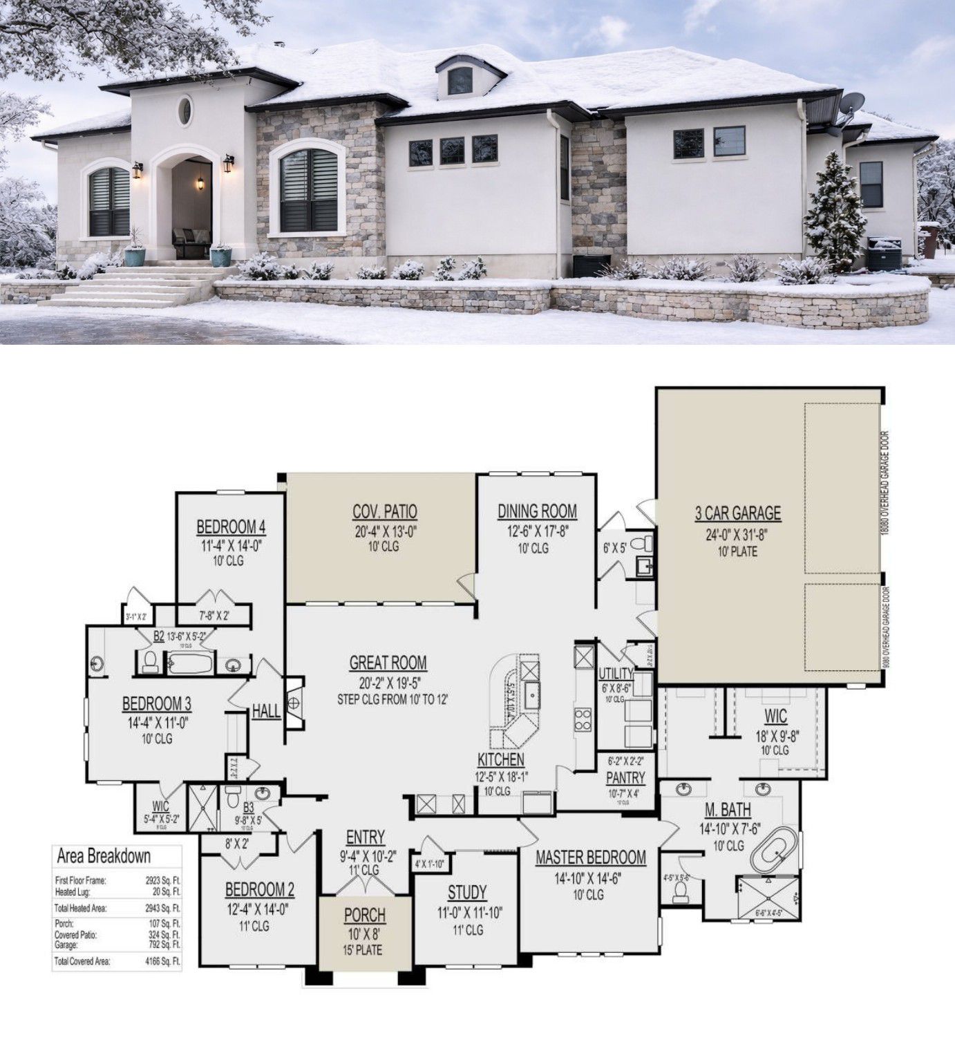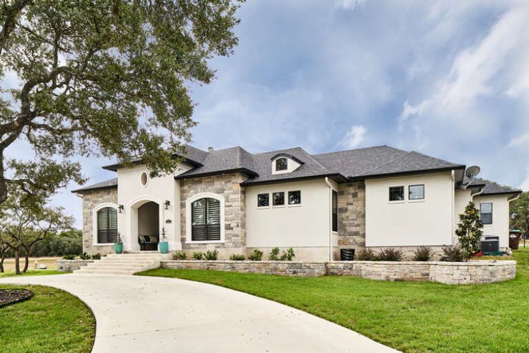 The exterior reflects classic European charm with a wide and impressive footprint measuring approximately 93 feet 11 inches wide and 59 feet deep. 1 This generous scale creates strong curb appeal while maintaining a balanced and elegant appearance.