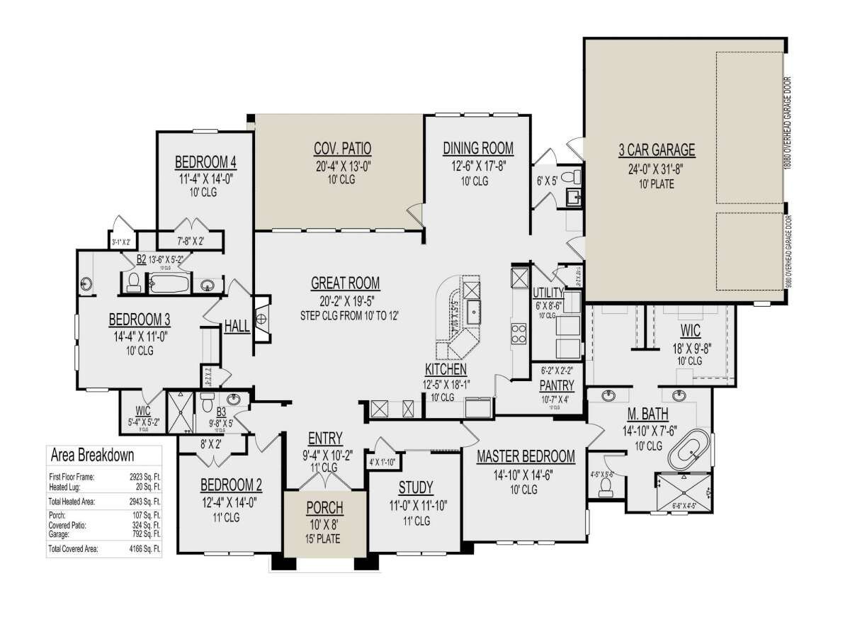 All 2,943 square feet of living space is arranged on a single level, offering excellent accessibility and convenience. 4 The layout is carefully designed to balance open shared spaces with private bedroom areas.