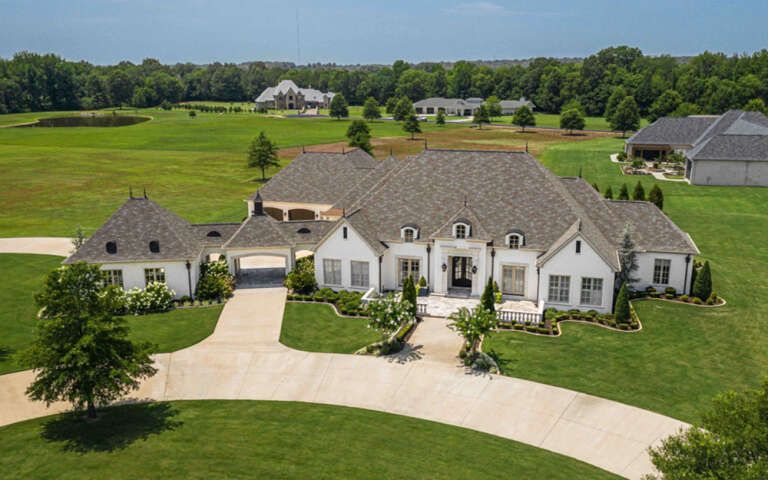 This grand and luxurious residence offers approximately 5,739 square feet of heated living space with five bedrooms, six full bathrooms, and two half bathrooms. The layout featured in