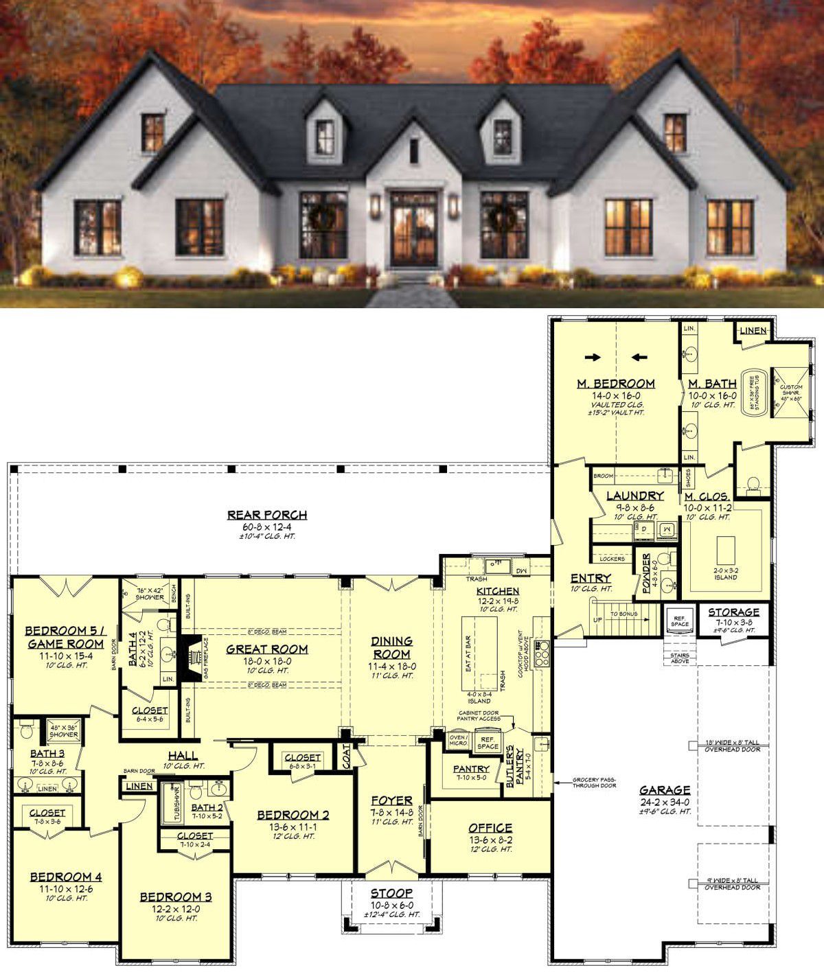 The heart of the home features a grand great room with ample natural light and generous proportions — perfect for family gatherings or entertaining guests. This room flows seamlessly into the adjacent dining area and gourmet kitchen, creating an open yet elegant hub for entertaining and everyday use. The kitchen boasts extensive counter space, a large central island, and walk-in pantry storage for convenience and functionality. ([houseplans.net](https://www.houseplans.net/floorplans/04100390/european-plan-3215-square-feet-5-6-bedrooms-4.5-bathrooms))