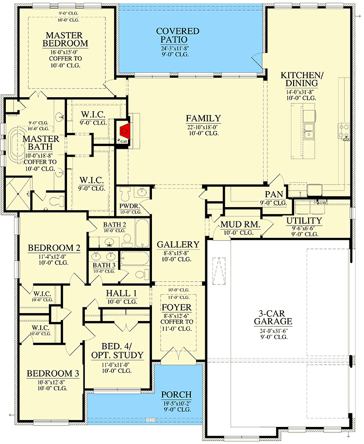 Assuming mid- to high-quality finishes and typical U.S. residential construction costs around $180–$260 per sq ft, building ~2,909 sq ft suggests a rough budget of **$524,000–$756,000 USD** (not including land, site prep, permits, or local cost variation). Because of the 3-car garage, covered patio, and quality finishes in this design, actual cost may trend toward the higher end. 12