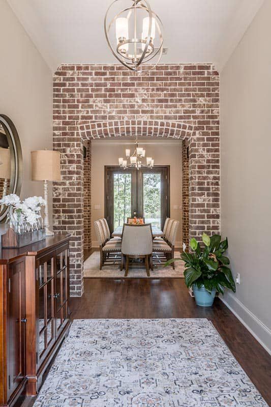 The great room flows seamlessly into the kitchen and dining space, creating an open living zone ideal for everyday family life and entertaining. The kitchen features a large island with bar seating and a true walk-in pantry — a layout built for usability. 7 The orientation toward the rear porch makes indoor-outdoor living effortless, a key advantage of this design.