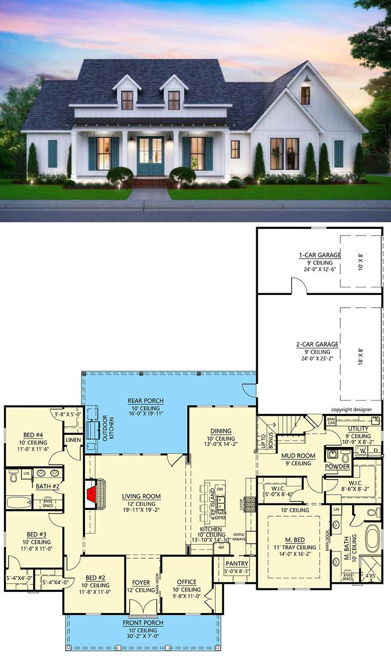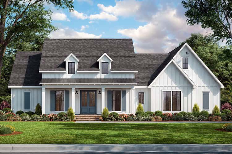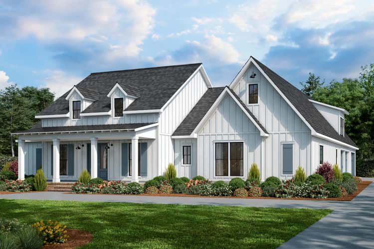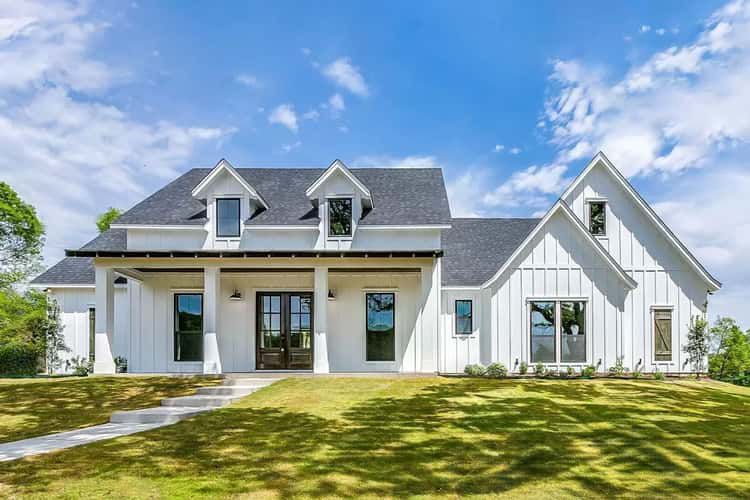 • Style / Architectural Character: Country / Modern Farmhouse — symmetrical façade, covered porches, open layout, farmhouse details with modern flexibility 8