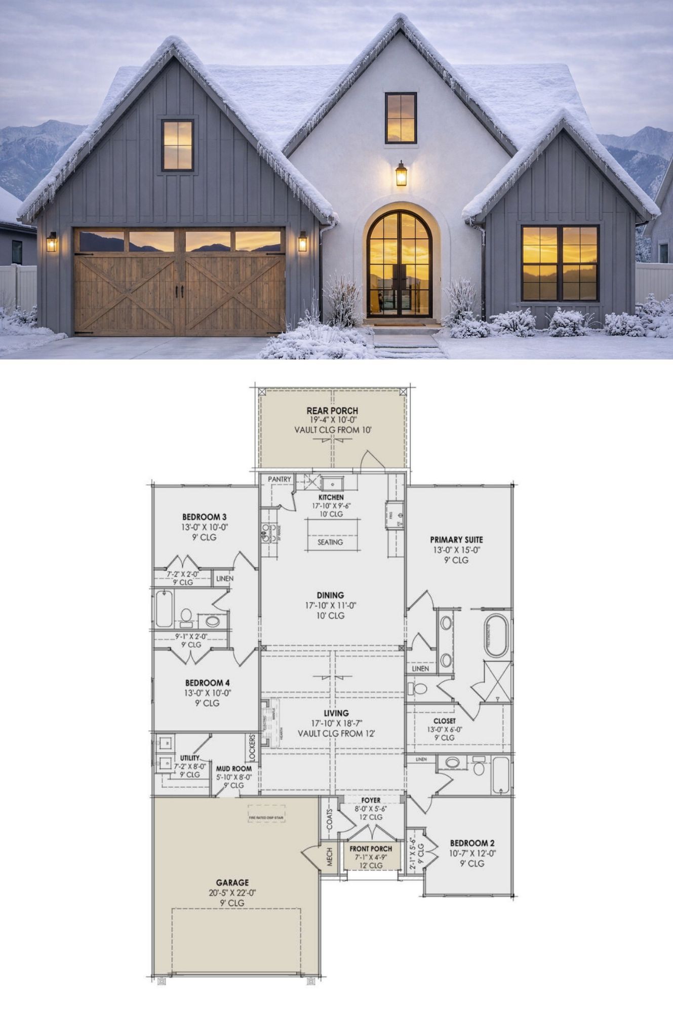Modern Farmhouse House Plan – 2,170 Sq Ft, 3 Bedrooms, 2.5 Bathrooms