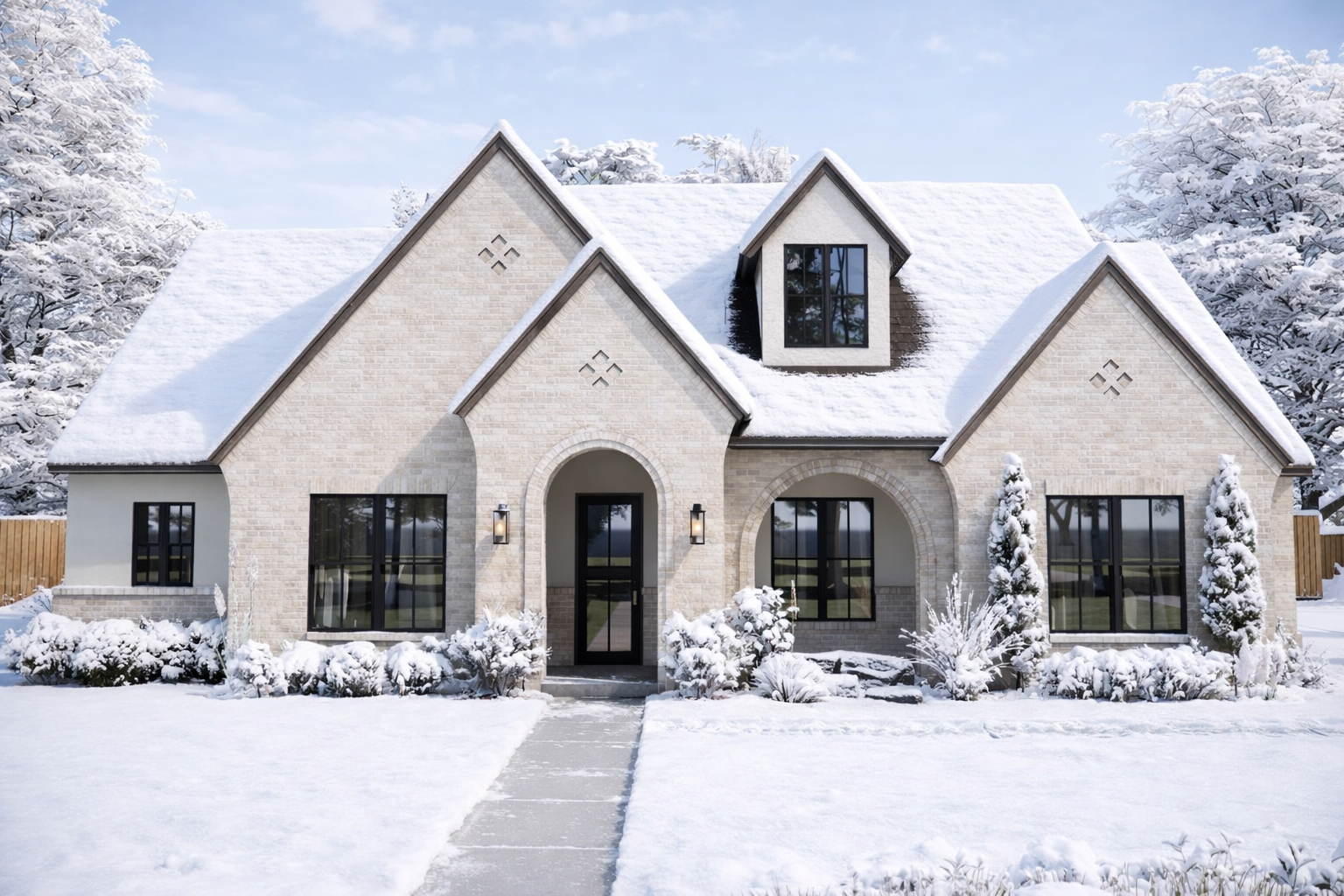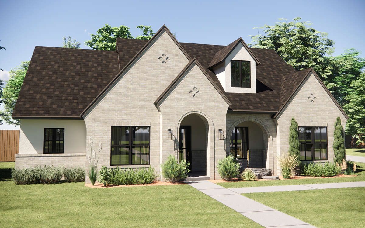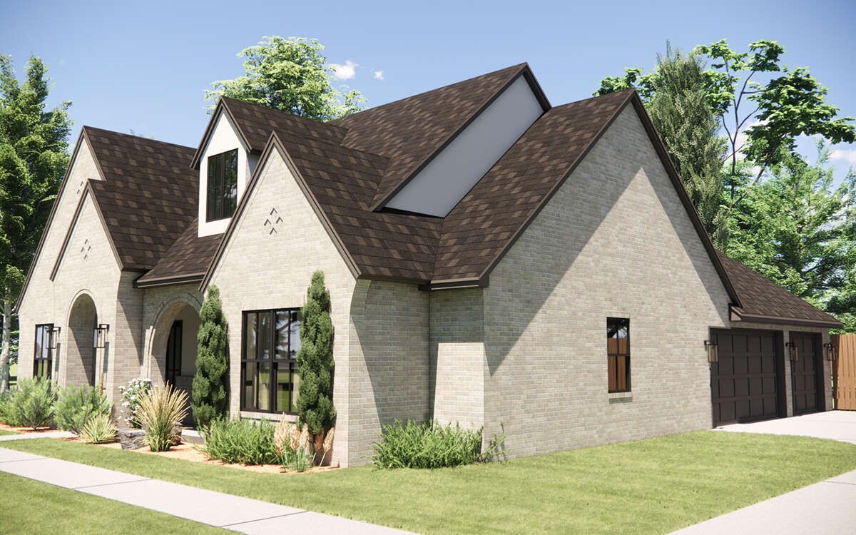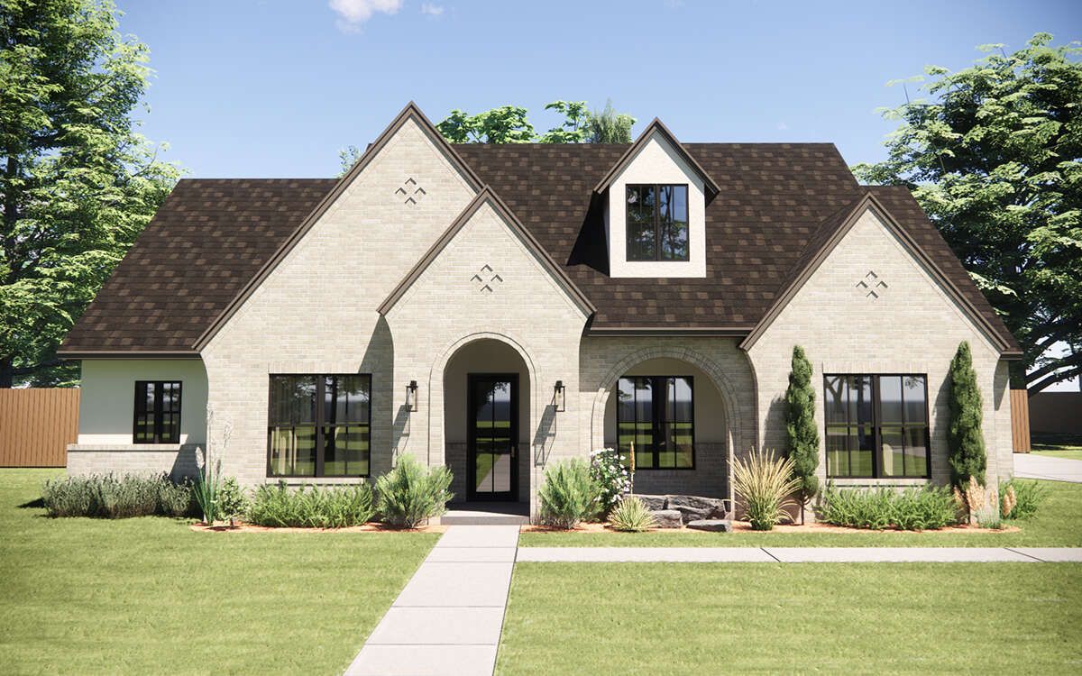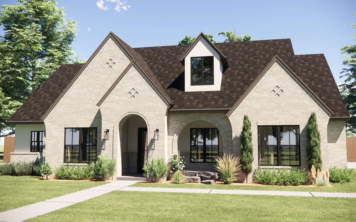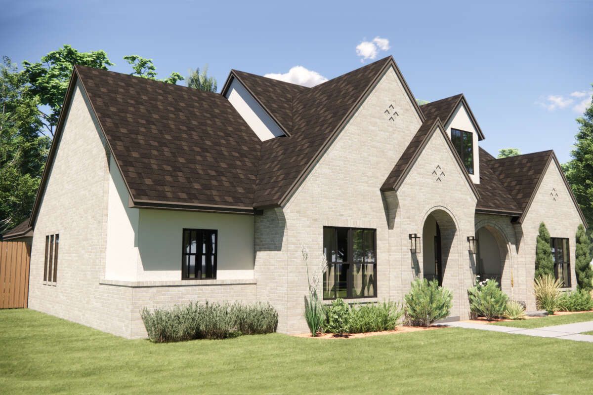 The exterior showcases classic French country architecture, known for its steep rooflines, balanced proportions, and refined detailing. This style often combines rustic warmth with elegant finishes, creating a home that feels both luxurious and welcoming. 1