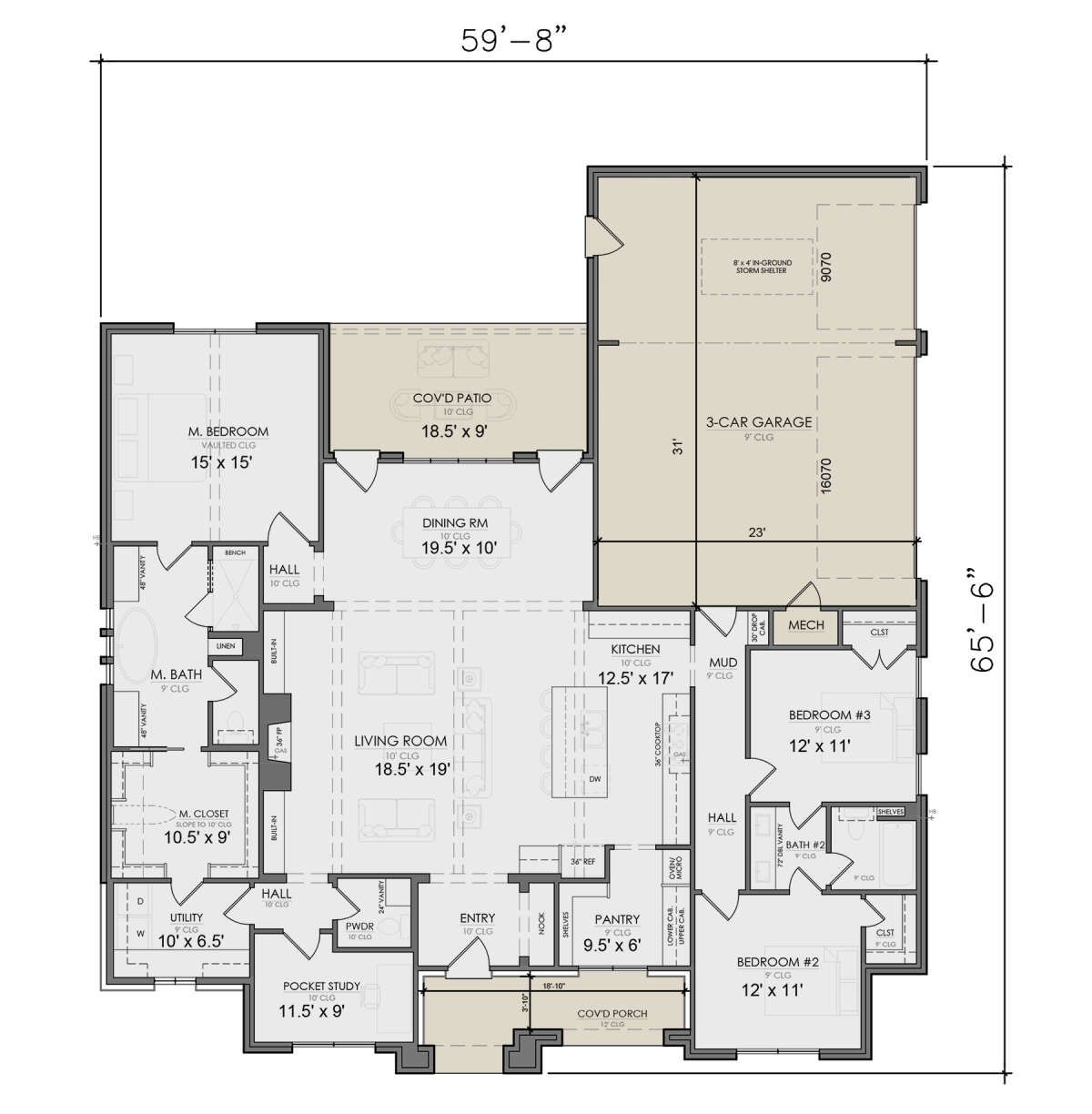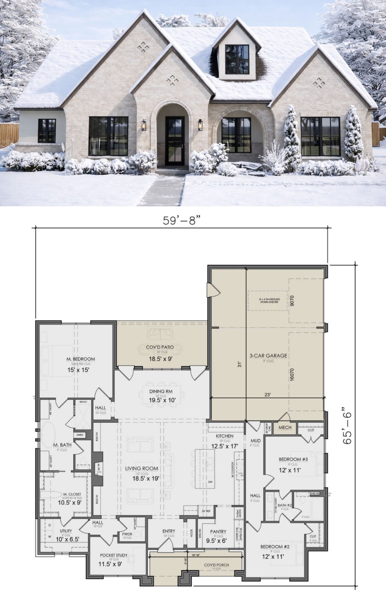 With overall dimensions of approximately 59 feet 8 inches wide and 65 feet 6 inches deep, the home has a strong and impressive presence while remaining practical for many lot sizes. 2