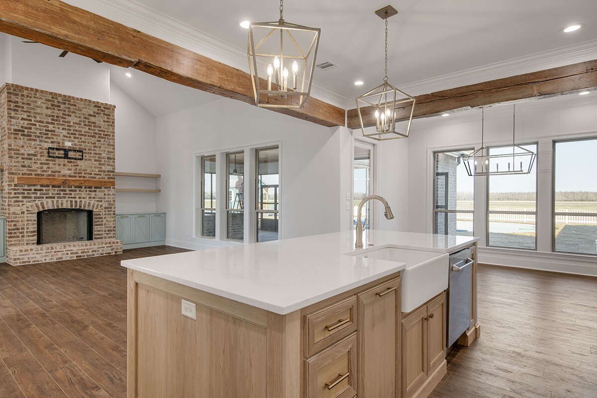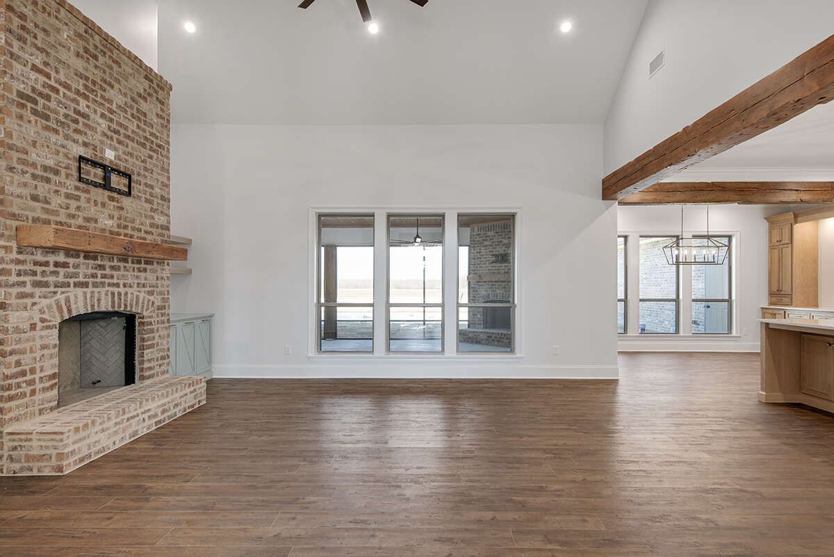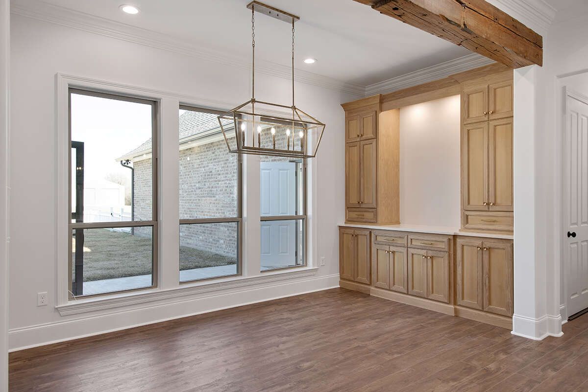 The living space works beautifully for both everyday life and entertaining. It’s the kind of room where you can host guests without feeling cramped, and still enjoy quiet evenings without the space feeling too formal or echo-filled. French Country interiors have a way of feeling charming and lived-in, and this plan supports that cozy elegance.