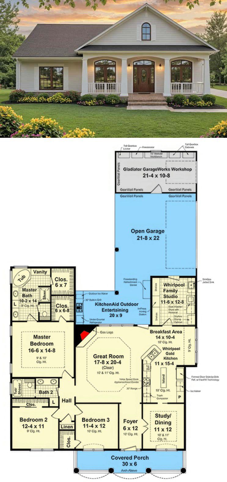 This charming country-style house plan offers about 2,050 sq ft of thoughtfully-designed space on one level, blending classic aesthetic with practical living. With 3 bedrooms, 2 full bathrooms, a spacious covered front porch that welcomes you home, and an attached 2-car carport (~959 sq ft) with convenient side entry, this layout reflects both timeless appeal and everyday function. 0