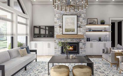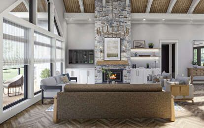 Large windows, wide porches, and strategic door placements boost natural light and reinforce seamless connections to the outdoors. 26 Whether you’re inside relaxing or stepping onto a porch to enjoy the view, the plan keeps you anchored to your surroundings and the serene lakefront environment. 27