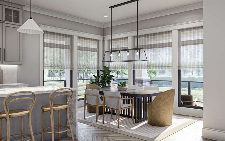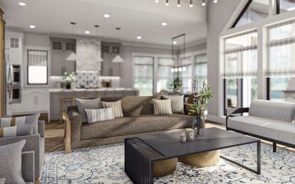 • Open, light-filled great room that bridges living, dining, and relaxing zones.