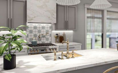 The kitchen is designed to balance everyday practicality with social connection. 11 It features ample counter space, beautiful cabinetry, and a central work triangle that supports both meal prep and conversation. 12 A breakfast bar or island provides additional seating and makes casual meals and morning routines effortless. 13