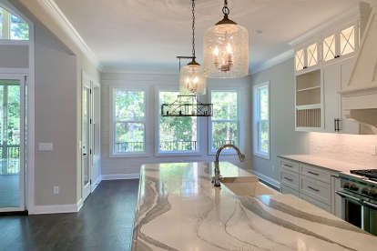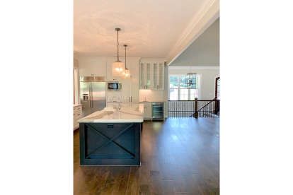 The kitchen is thoughtfully planned with both style and functionality in mind. 10 A large island provides ample prep space and a natural gathering hub for casual meals or conversations. 11 Plenty of counter and cabinet space makes meal prep smooth and efficient, while quality finishes and fixtures elevate both look and performance. 12