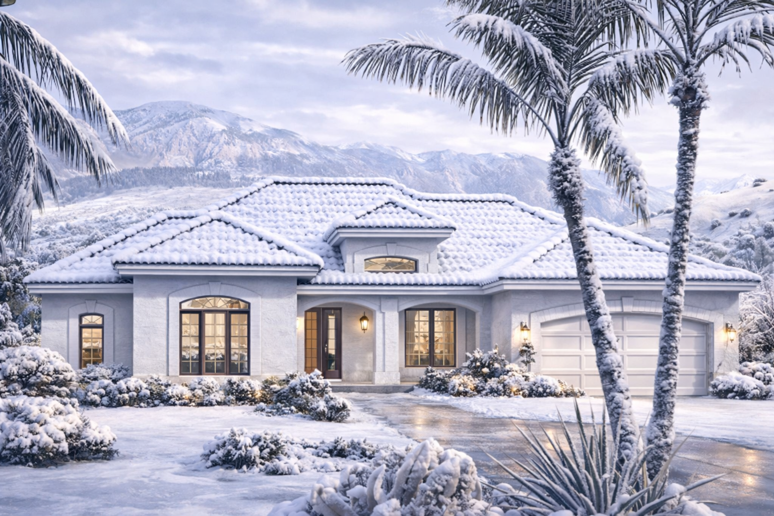 The exterior showcases the bold and distinctive character of Mediterranean architecture. A stucco façade, multiple gables, and a charming covered front porch create a visually appealing and welcoming entrance. The home’s balanced and symmetrical design enhances curb appeal while maintaining a refined and timeless look. 1