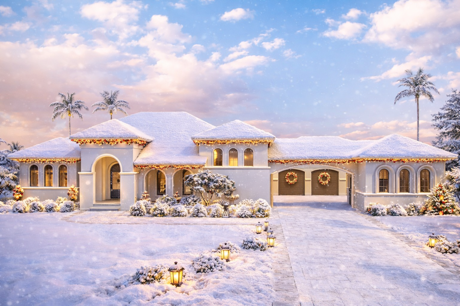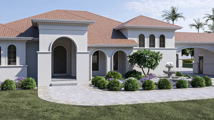 The exterior showcases classic Mediterranean character — arched windows and openings, textured finishes, and a welcoming covered entry porch that sets a warm and sophisticated tone. 1 A porte cochere and courtyard entry add architectural interest and practical convenience, creating a grand yet livable street presence. 2 The attached 4-car garage (~1,171 sq ft) keeps vehicles and gear sheltered without overwhelming the home’s proportions. 3