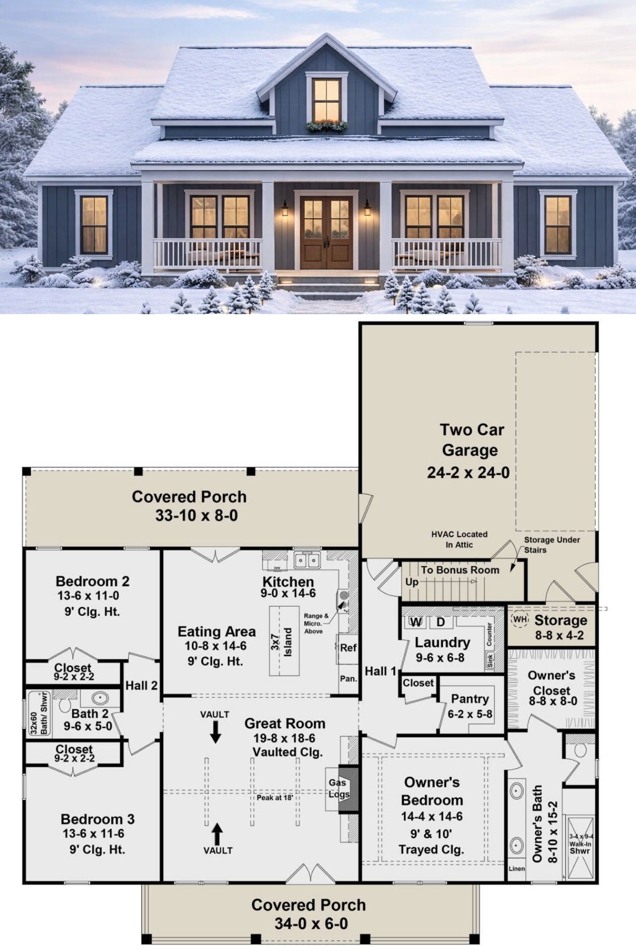 - Dimensions: ~94′ wide × ~76′ deep; max ridge ~24′ 33
