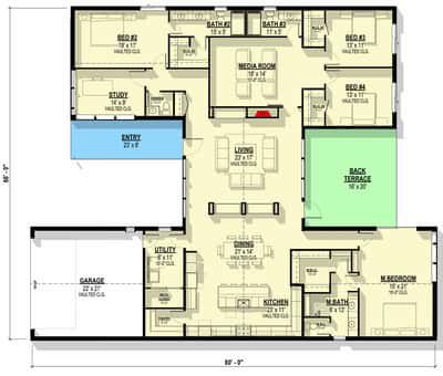 This mid-century modern ranch delivers approximately 3,336 sq ft of spacious, single-level living designed around clean lines, open flow, and relaxed sophistication. With 4 bedrooms, multiple living zones, and a dedicated media room, the layout blends iconic mid-century character with modern comfort, making it ideal for families who value both architectural style and practical livability.
