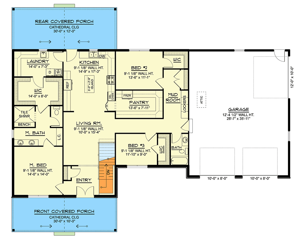 A charming covered front porch welcomes family and guests while offering a great space for everyday outdoor living — from morning coffee to quiet afternoons. 4 The entry leads directly into an open interior that feels expansive from the moment you step inside. 5 Carefully planned circulation keeps the living areas easy to access without wasted hallways, giving this plan a comfortable and intuitive flow. 6