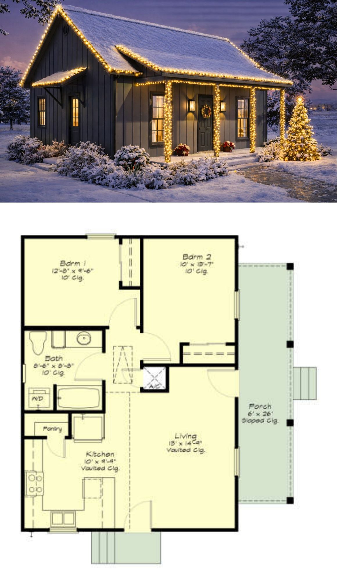 This beautifully simple cottage design delivers about 758 sq ft of thoughtfully arranged living space featuring 2 bedrooms and 1 full bathroom. Designed for comfortable everyday living, this home blends classic cottage charm with practical flow, an inviting front porch, and a bright interior that feels larger than it is — perfect for first-time homeowners, downsizers, or anyone seeking a cozy yet stylish residence. 0