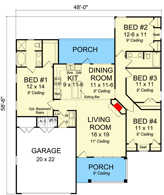 Outdoor living is woven into the plan with nearly 697 sq ft of combined porch space. 4 The roomy screened porch off the living area extends your usable living space, offering a peaceful retreat for morning coffee, family dinner, or lazy weekend afternoons. 5 These covered outdoor areas enhance comfort, protect you from sun or rain, and encourage indoor-outdoor living year-round. 6