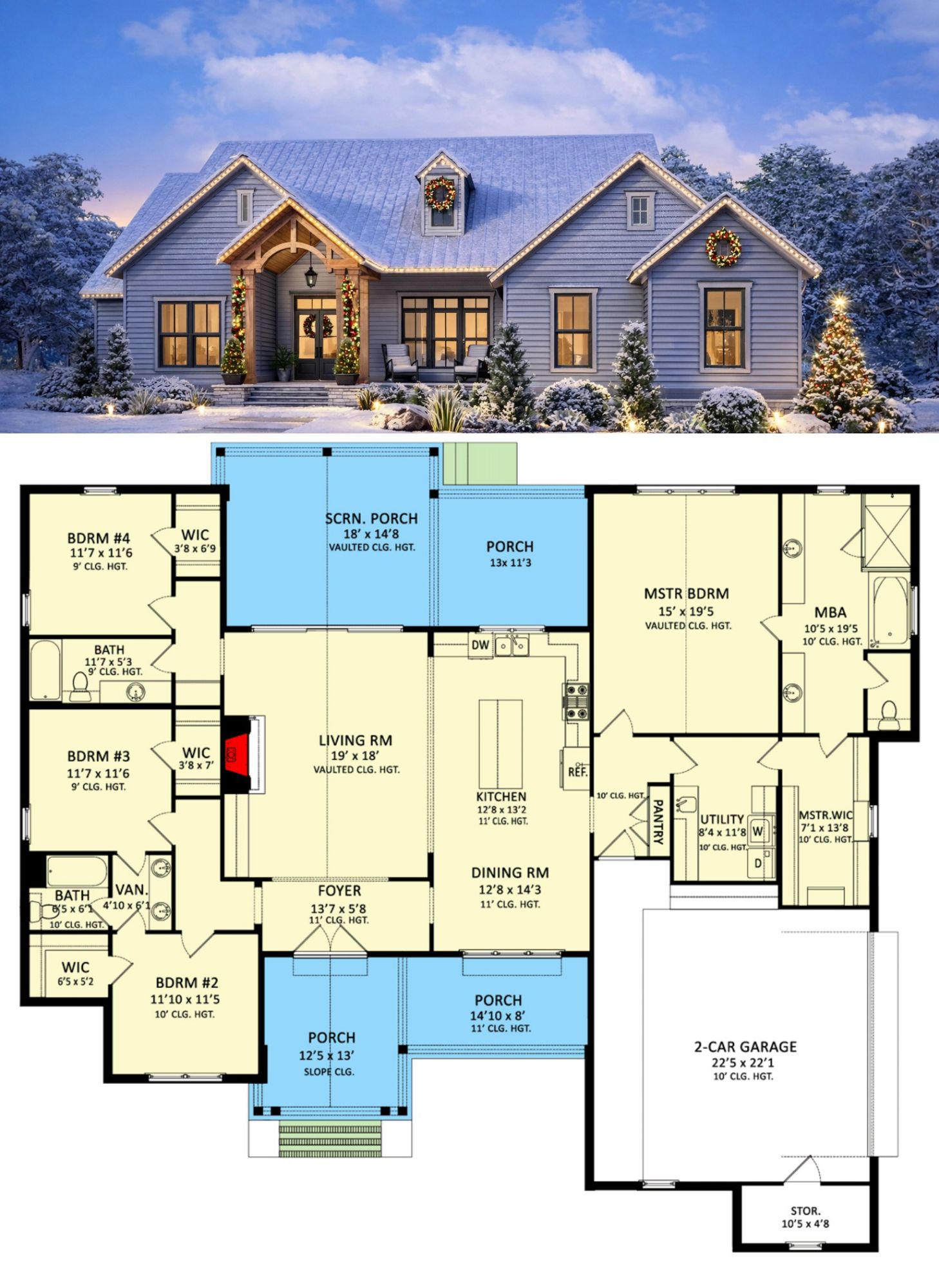 Modern Farmhouse Plan – Elegant, Comfortable & Functional 4-Bedroom Home with 3.5 Baths (~2,471 Sq Ft)
