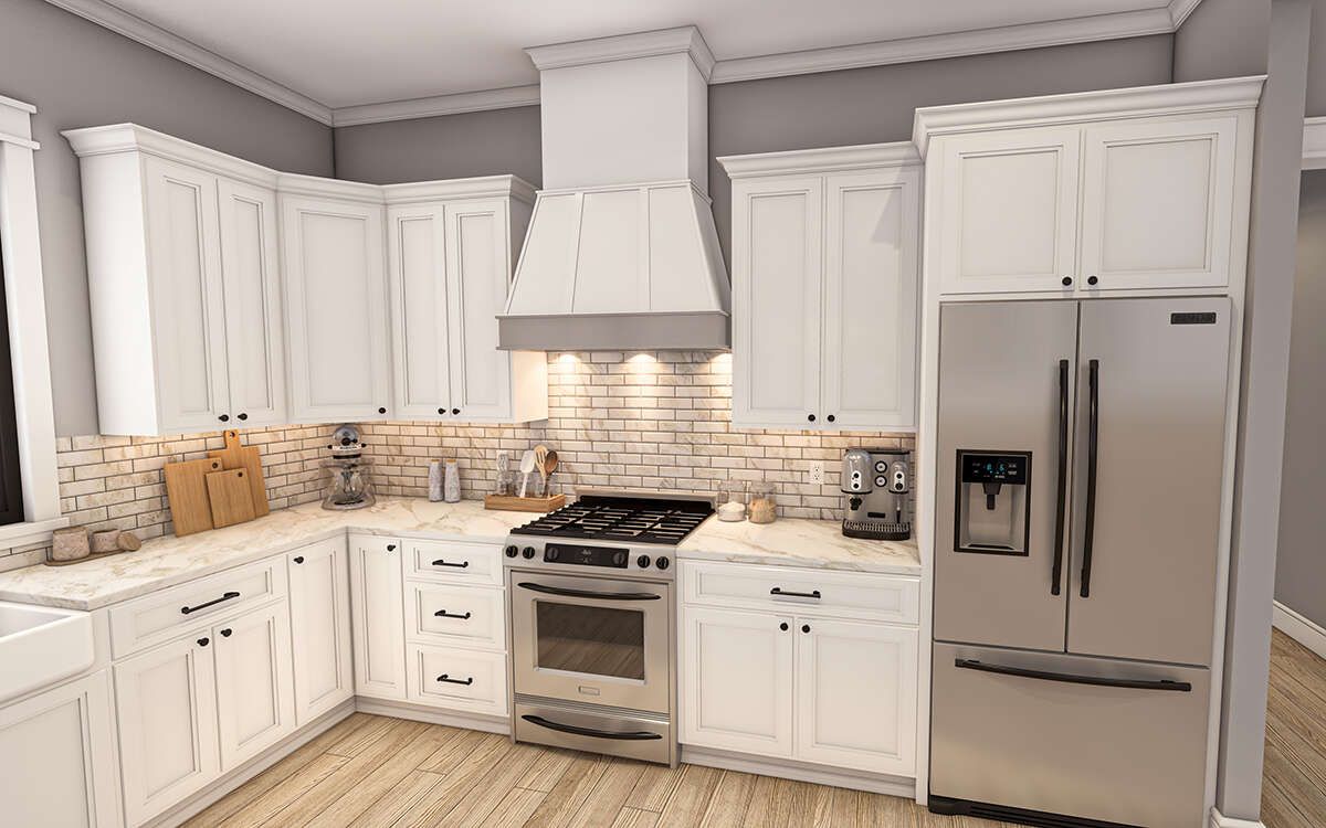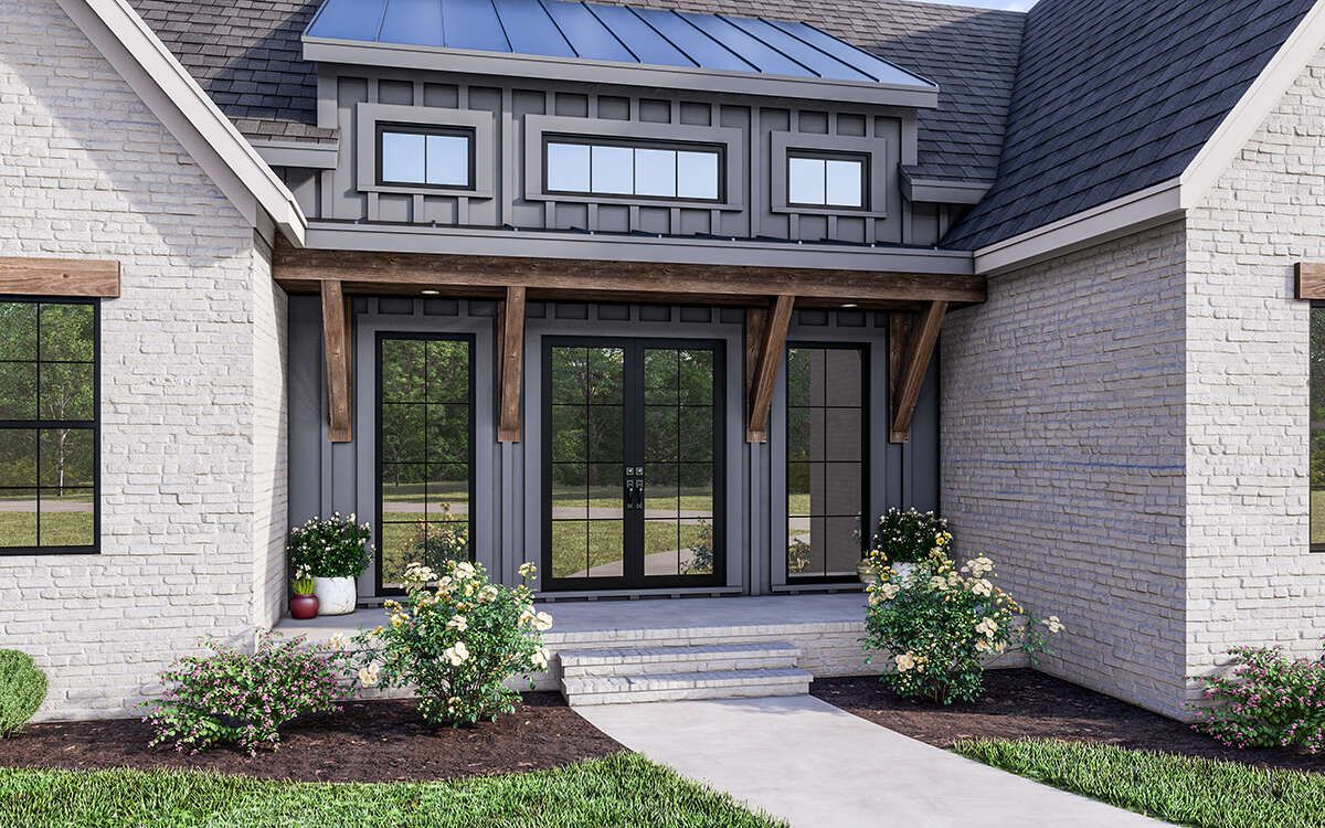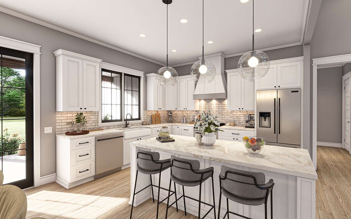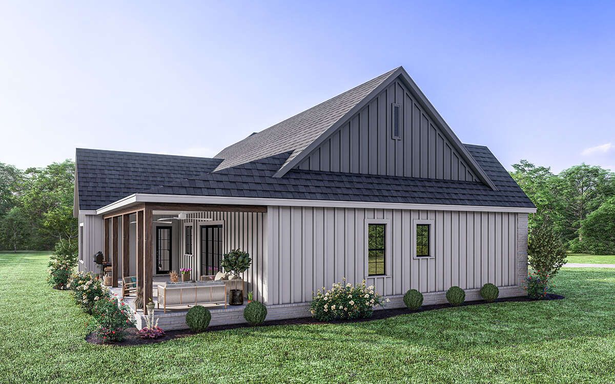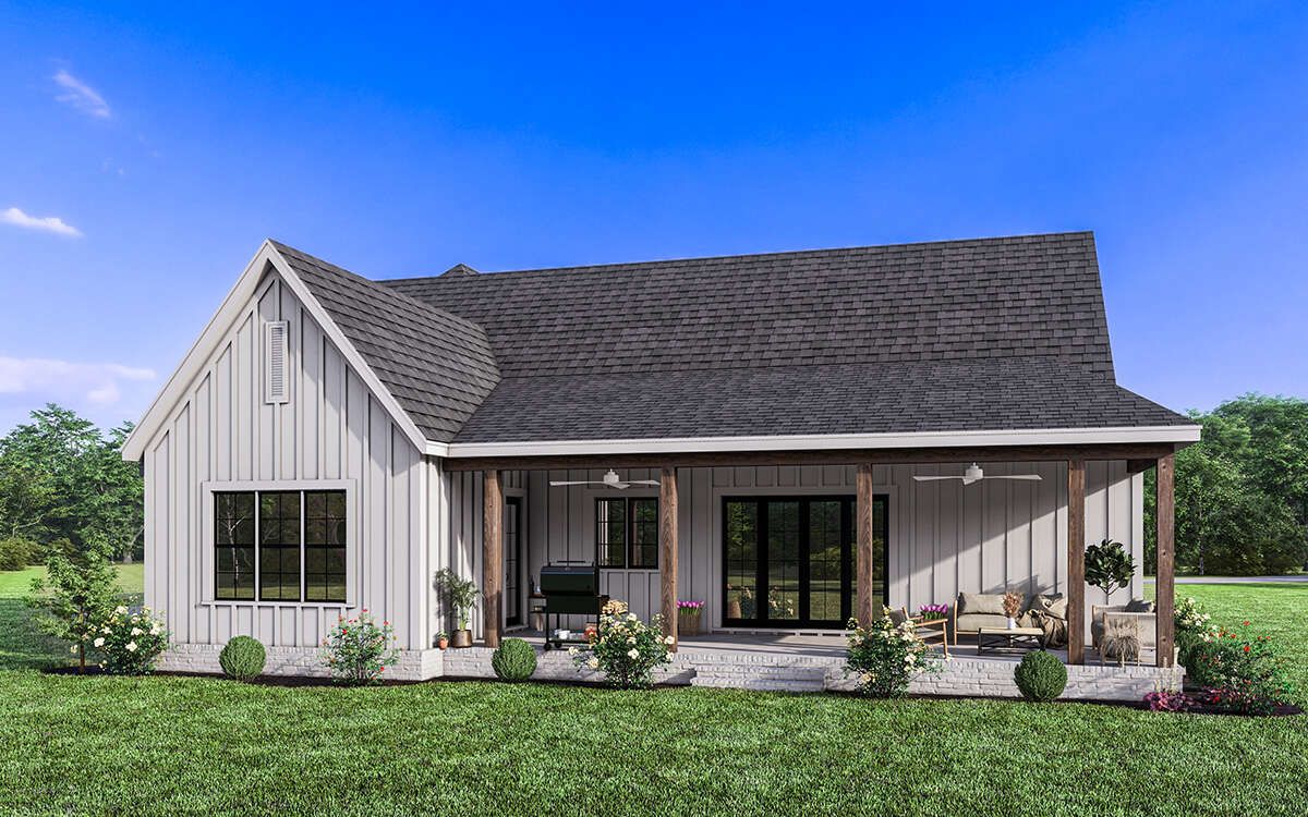 This modern farmhouse design proves that you don’t need an oversized home to live beautifully. It’s open where you want connection, private where you need rest, and practical enough to make everyday routines feel easier. With three bedrooms, 2.5 bathrooms, and a warm farmhouse exterior, it offers a timeless home that feels cozy, functional, and welcoming—ready to support real life for years to come.