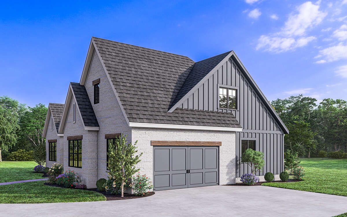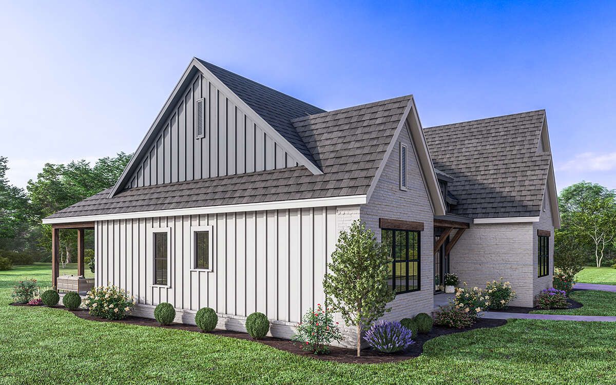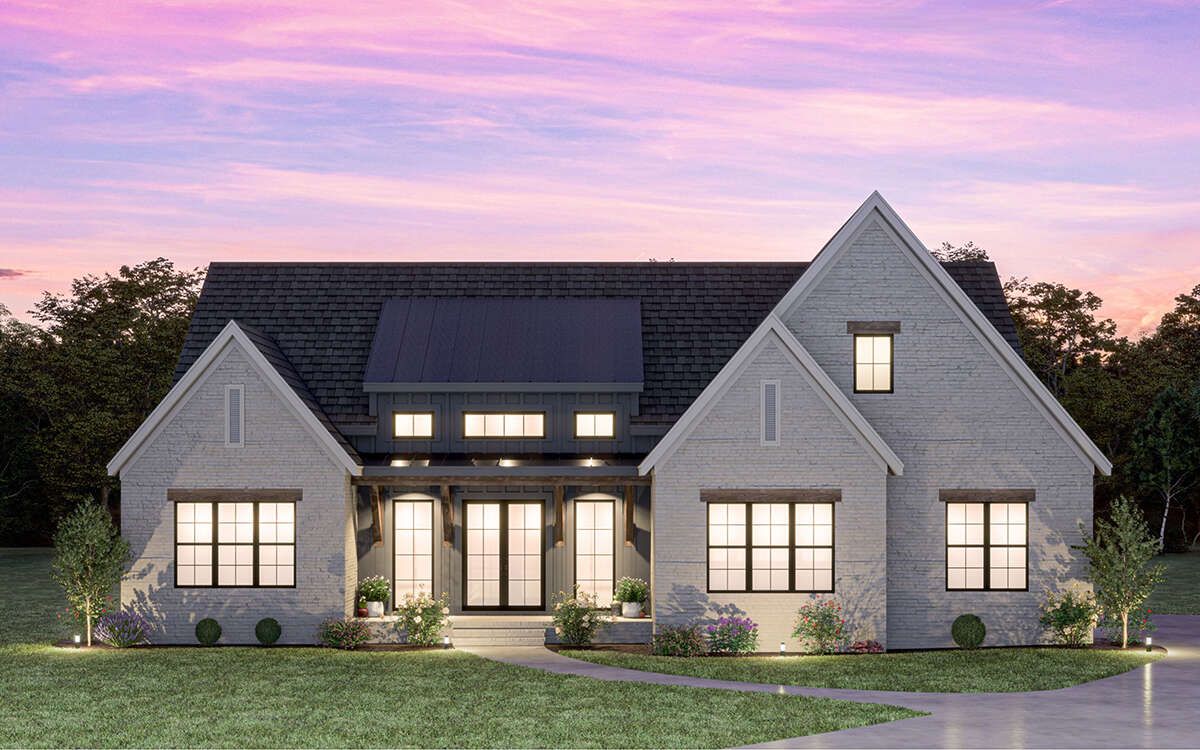 - Farmhouse styling offers timeless curb appeal with modern comfort.