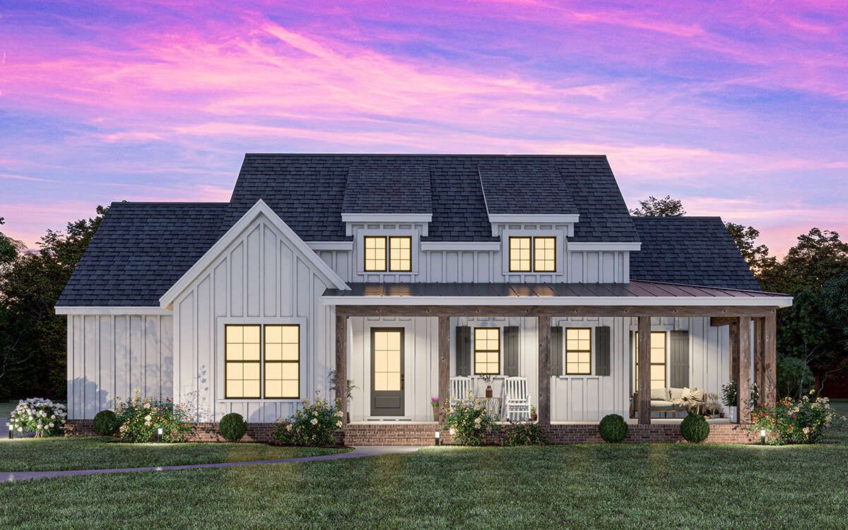 This thoughtfully designed modern farmhouse delivers a perfect balance of comfort, simplicity, and timeless curb appeal. With 1,499 square feet of well-organized living space, this home is ideal for families, downsizers, or anyone seeking a cozy yet functional layout. Clean lines, classic materials, and a welcoming front presence make this design both practical and visually appealing.