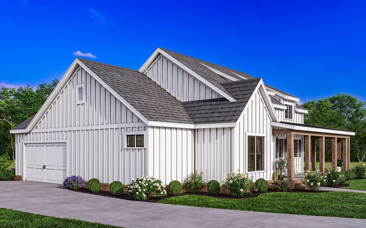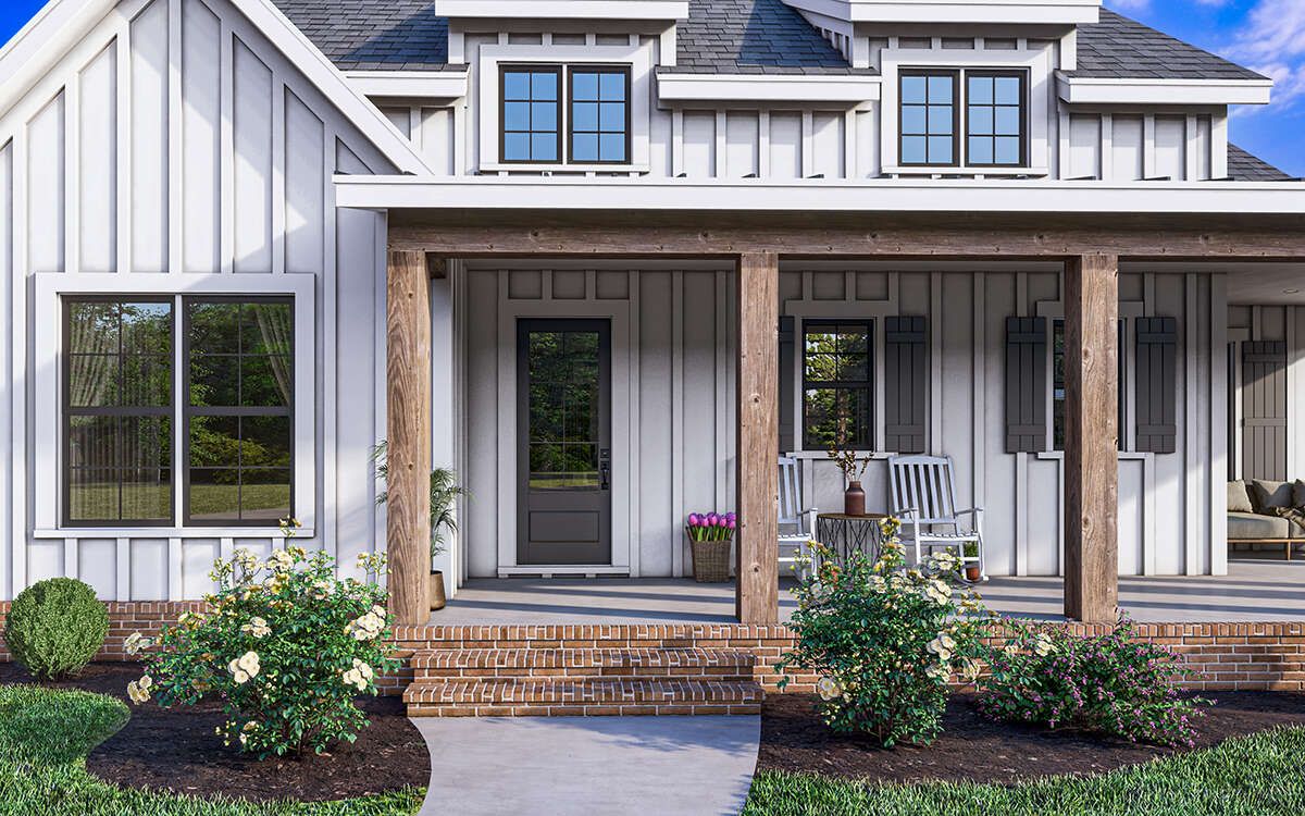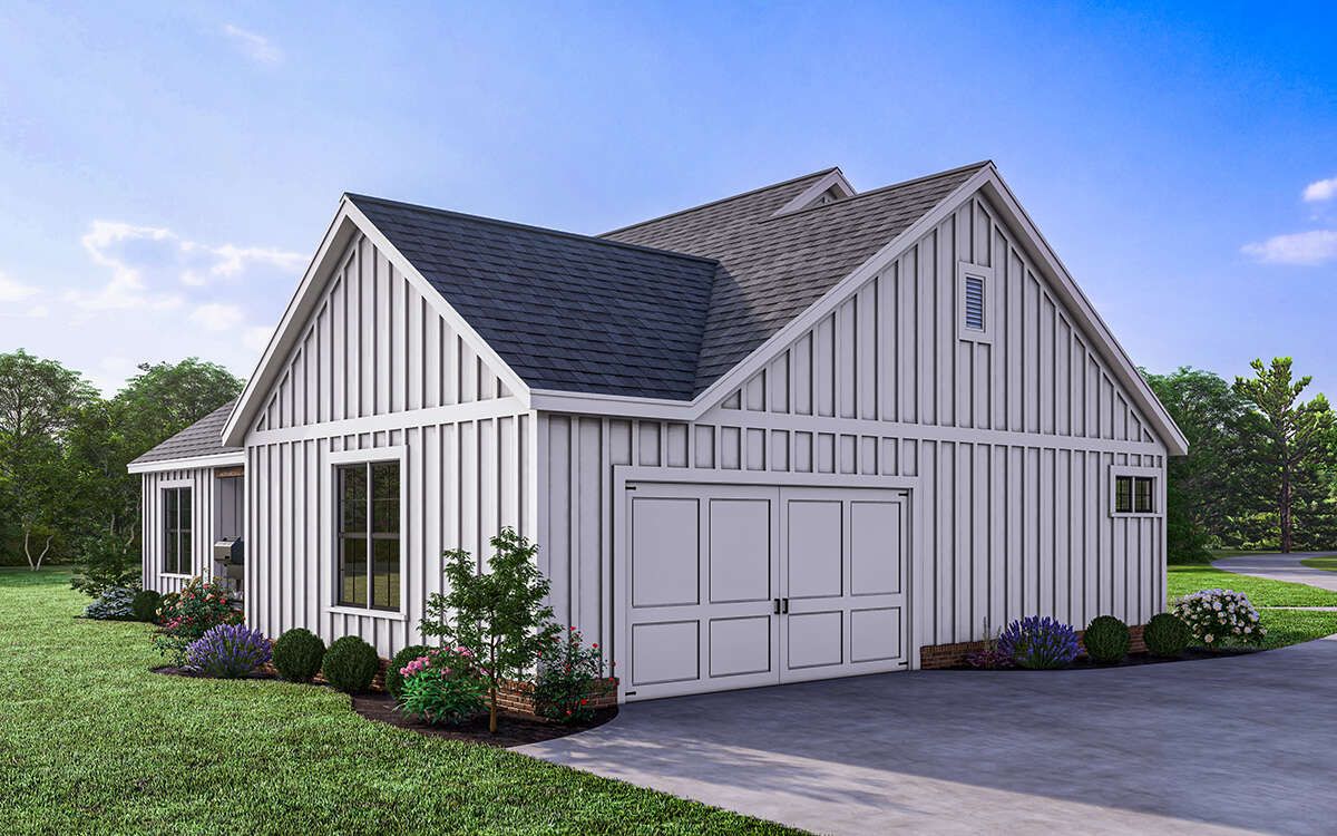 This modern farmhouse plan is a perfect example of how thoughtful design can maximize both comfort and efficiency. Every square foot is utilized effectively, ensuring that the home feels spacious without unnecessary excess. The open layout, combined with private bedroom spaces, creates a balanced environment suitable for a variety of lifestyles.