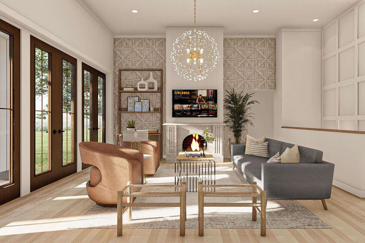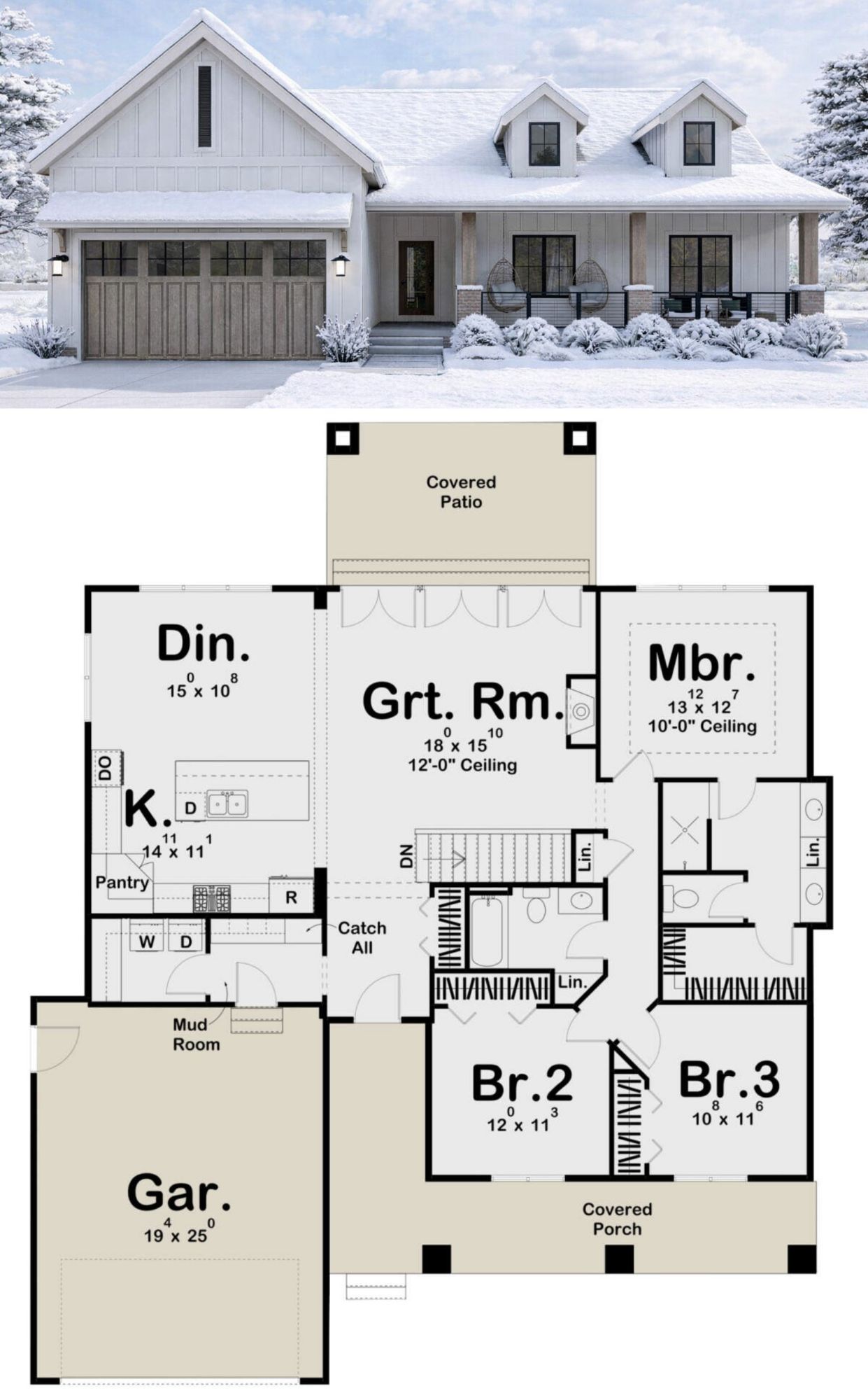 this modern farmhouse plan combines stylish simplicity with practical family living, making it an excellent choice for modern households. 0