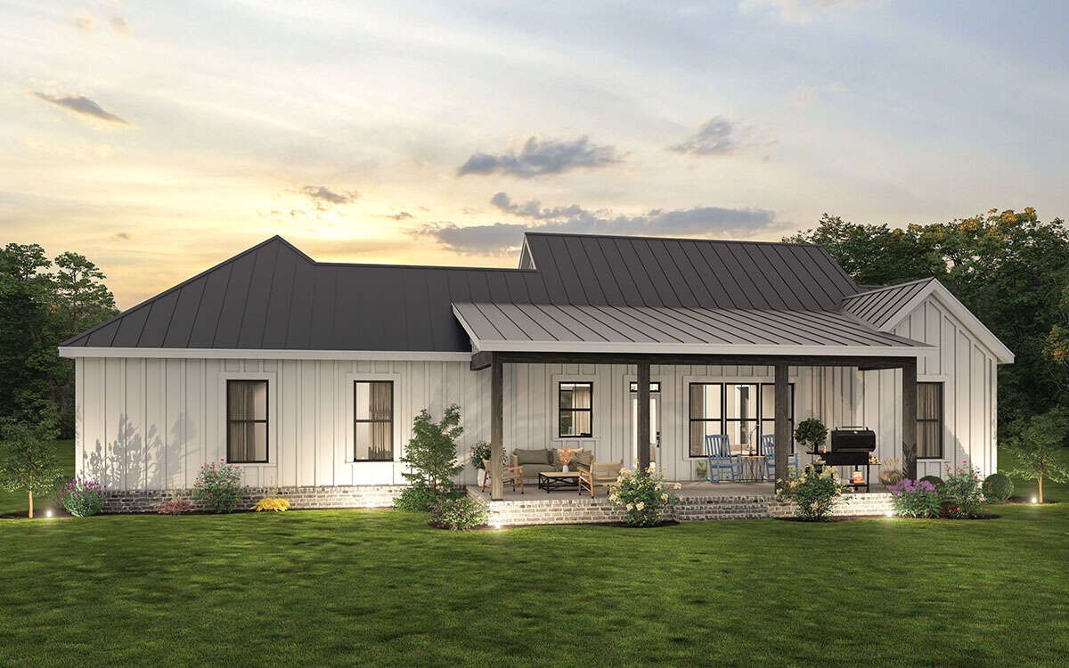 This modern farmhouse plan offers a perfect blend of comfort, efficiency, and timeless design. With its open layout, practical features, and inviting style, it is an excellent choice for homeowners seeking a well-balanced and functional home.