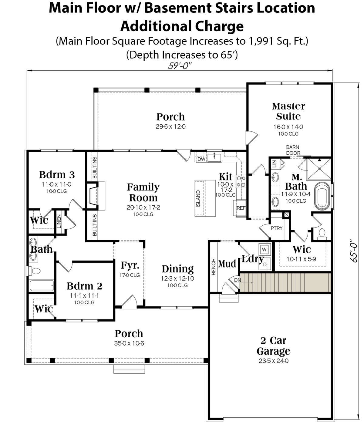 This plan includes a 2-car garage, with an option to upgrade to a 3-car garage depending on needs. 5