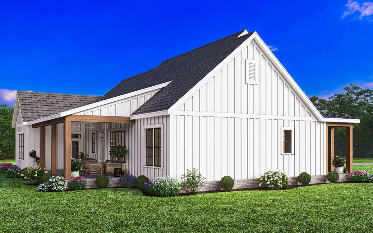 This modern farmhouse plan offers a perfect blend of style, comfort, and practicality. With its open layout, flexible garage options, and inviting design, it is an excellent choice for homeowners seeking a modern yet timeless family home.