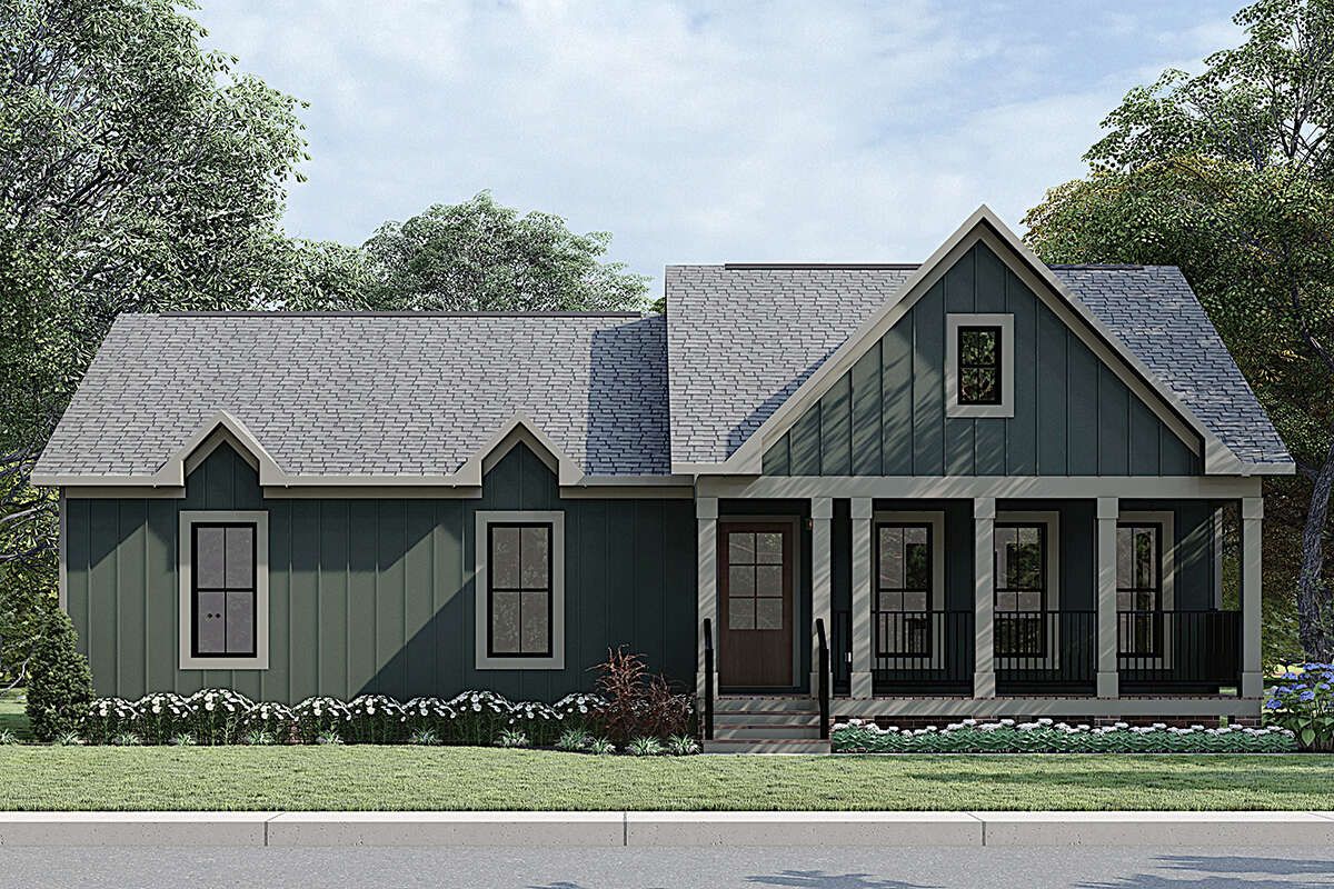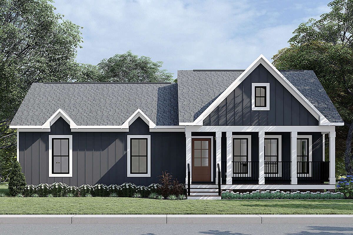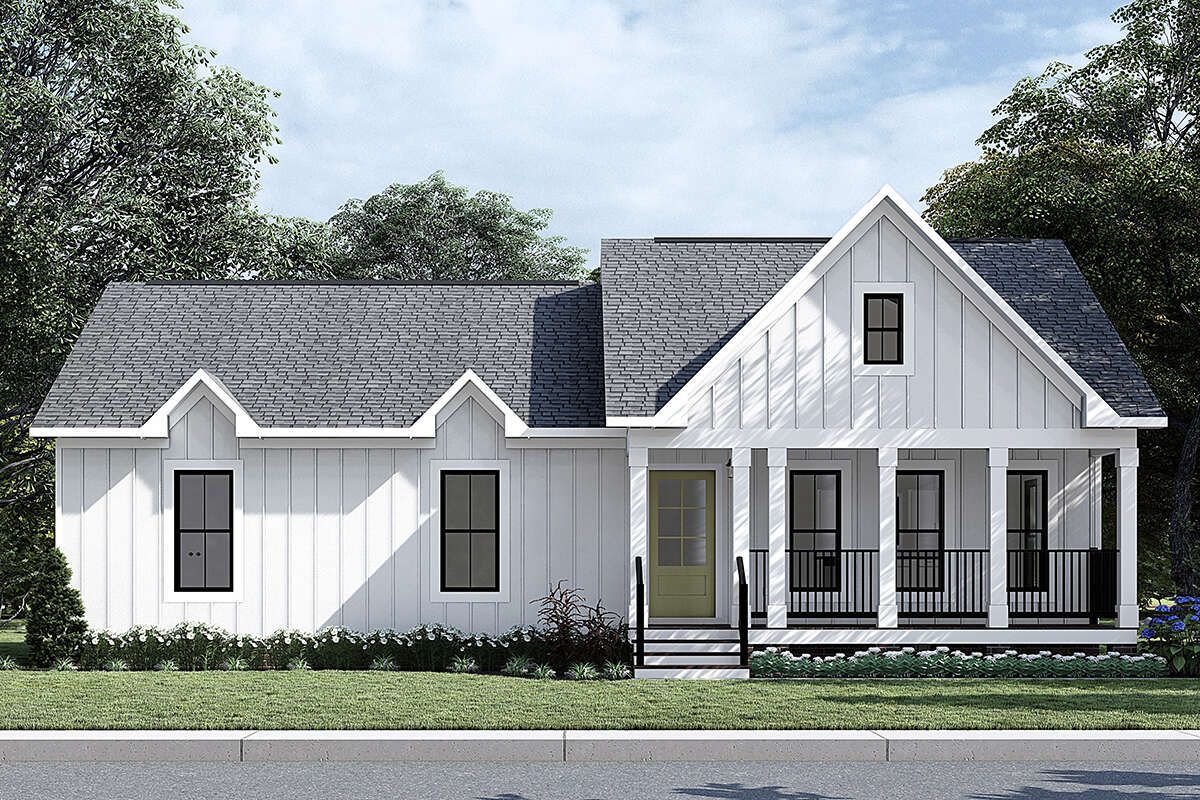 This modern farmhouse plan offers warm style, smart function, and everyday comfort in a footprint that’s easy to live in and easy to maintain. With three bedrooms, two bathrooms, and an open main living space designed for connection, it supports family routines, guest stays, and work-from-home needs without feeling oversized. It’s cozy without being cramped, efficient without feeling tight, and packed with the kind of charm that makes a home feel welcoming from day one.