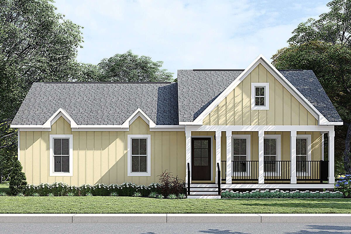 This modern farmhouse plan offers warm style, smart function, and everyday comfort in a footprint that’s easy to live in and easy to maintain. With three bedrooms, two bathrooms, and an open main living space designed for connection, it supports family routines, guest stays, and work-from-home needs without feeling oversized. It’s cozy without being cramped, efficient without feeling tight, and packed with the kind of charm that makes a home feel welcoming from day one.