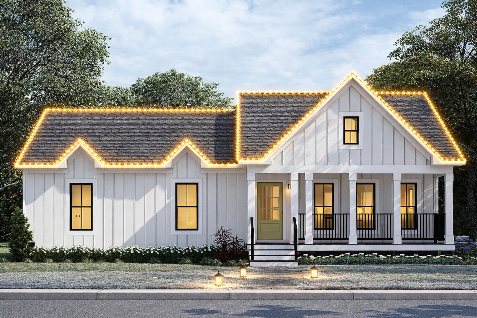 - Modern farmhouse curb appeal with warm, timeless personality.