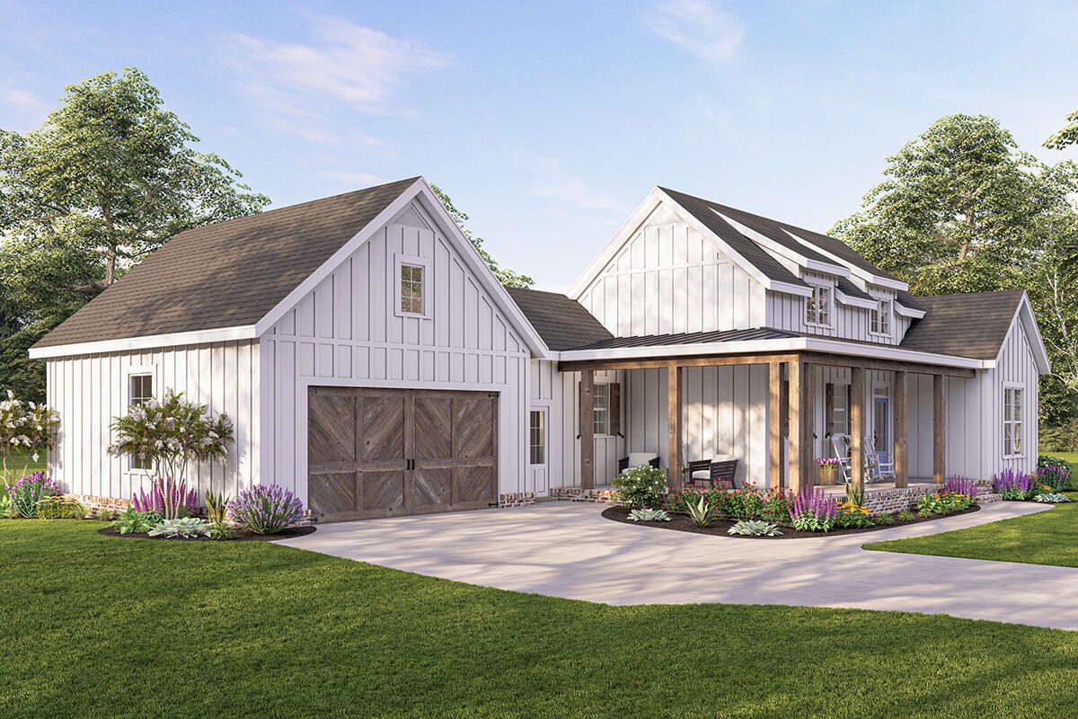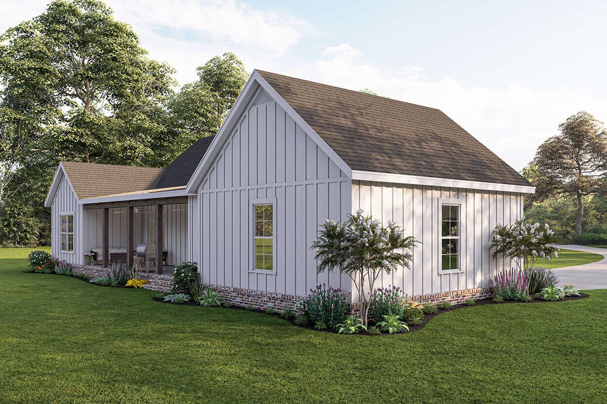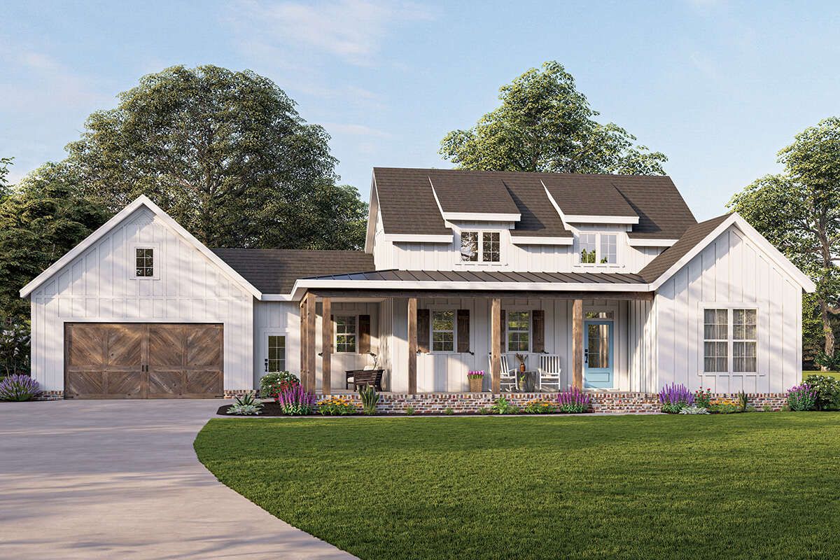 This modern farmhouse plan delivers an impressive combination of style, comfort, and efficiency. Its inviting porches, open living areas, and smart layout make it an excellent choice for homeowners seeking a well-designed and practical single-story home.