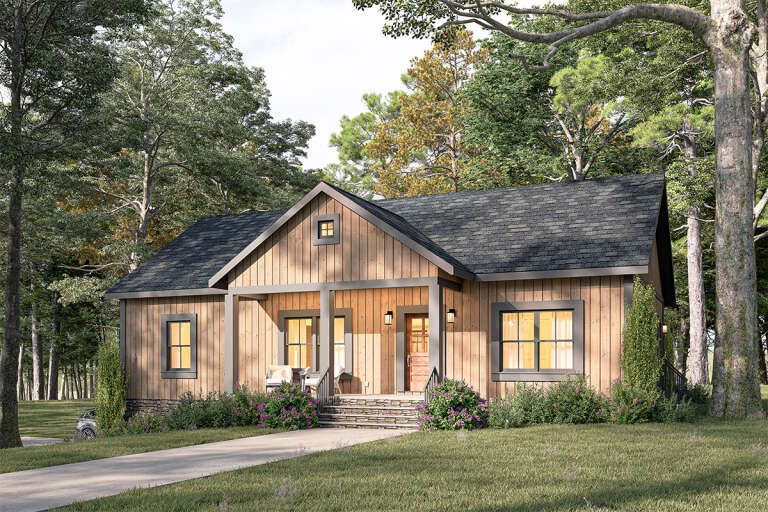 This modern farmhouse plan strikes a beautiful balance between inviting indoor spaces and functional everyday living. Its open, light-filled core, thoughtful bedroom placement, and seamless transitions between indoor and outdoor zones make it both comfortable and welcoming — perfect for small families, first-time buyers, or anyone seeking efficient modern farmhouse living.