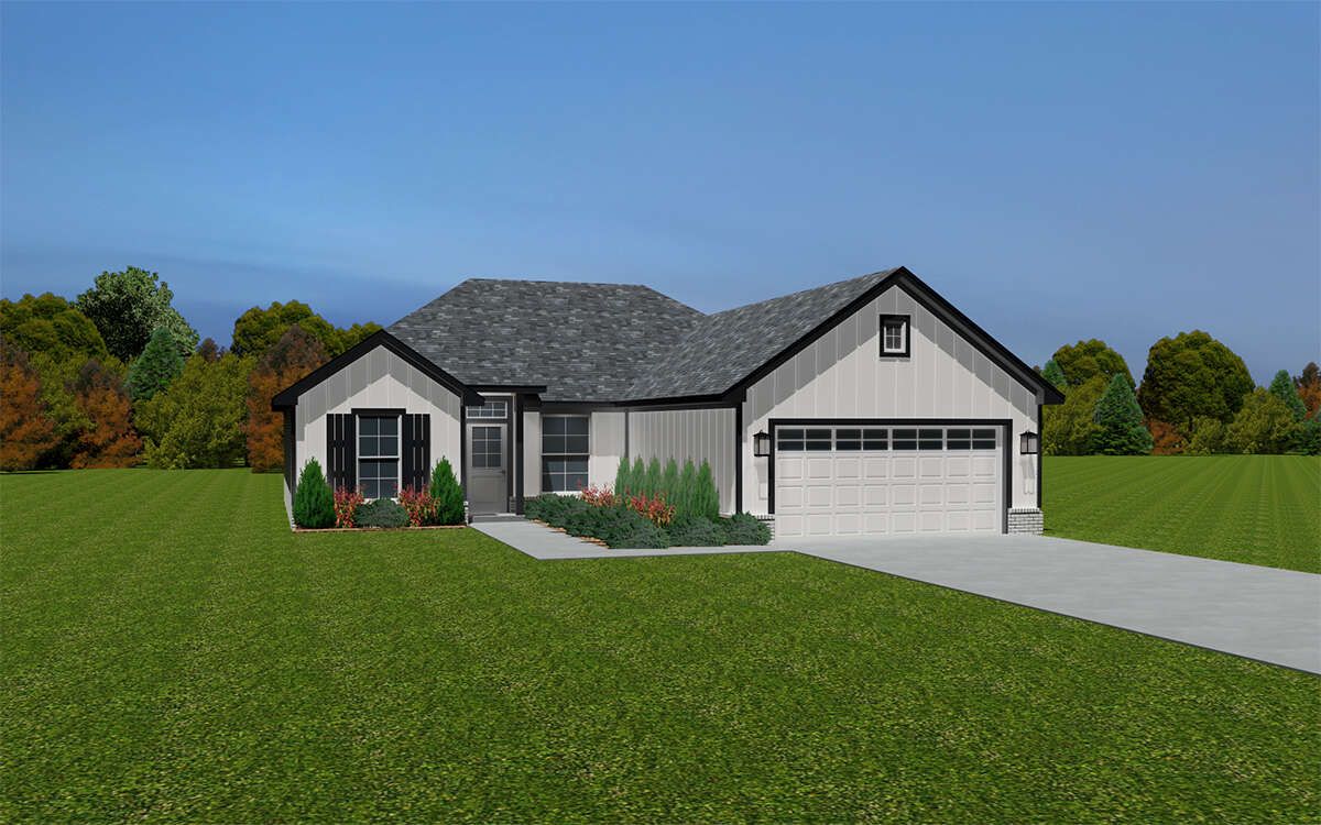 This attractive modern farmhouse design offers approximately 1,442 square feet of heated living space with three bedrooms and two full bathrooms. Designed with a practical single-story layout and timeless farmhouse charm, the home blends welcoming exterior character with efficient interior living spaces. The plan is well suited for small families, first-time homeowners, or anyone looking for a comfortable home that balances style, functionality, and manageable square footage. 0