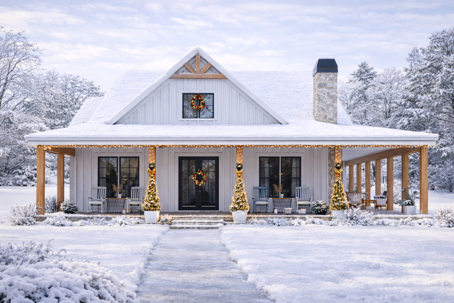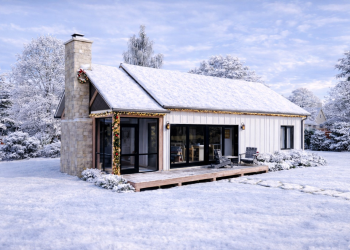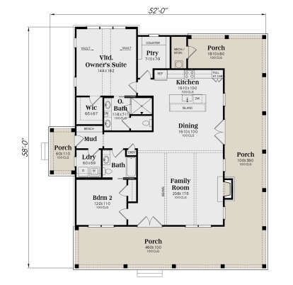 The exterior showcases timeless modern farmhouse charm with clean lines, pitched rooflines, and a welcoming covered porch that enhances curb appeal and outdoor living. Designed for wide adaptability, the home’s footprint measures about 52 feet wide by 58 feet deep, fitting comfortably on many suburban, rural, or small-lot sites. 1