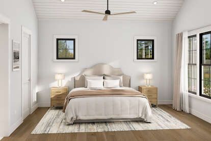 This modern farmhouse plan emphasizes an open-concept interior that blends shared living areas with private zones for quiet and rest. The efficient layout supports everyday living, entertaining, and easy circulation throughout. 3