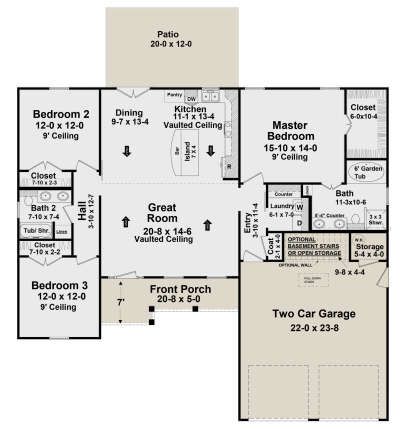 This plan includes three comfortable bedrooms. The primary suite is positioned for privacy and features direct access to a full bathroom, acting as a peaceful retreat for homeowners. 6