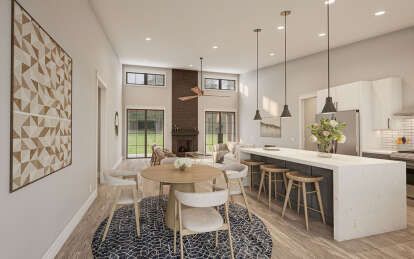 The kitchen is thoughtfully positioned with ample counters, cabinetry, and an island or peninsula for meal preparation, casual dining, and social interaction. Its adjacency to the dining zone enhances convenience and connection. 5