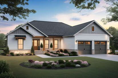 This charming modern farmhouse design offers approximately 1,600 square feet of well-balanced living space with three bedrooms, two full bathrooms, and an attached two-car garage — ideal for families, first-time homeowners, or anyone seeking efficient yet stylish everyday living. With a clean exterior and functional open interior flow, this plan blends classic farmhouse elements with contemporary comfort. 0