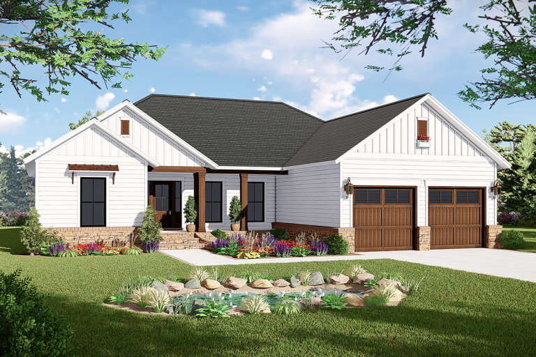The home includes approximately 1,600 square feet of heated living space arranged on a single level, supporting efficient circulation and accessibility throughout. Conventional wood framing and a straightforward roof design contribute to economic construction and long-lasting durability. Foundation options such as slab, crawlspace, or basement can be selected based on site conditions and homeowner preferences. ([houseplans.net](https://www.houseplans.net/floorplans/34800290/modern-farmhouse-plan-1600-square-feet-3-bedrooms-2-bathrooms))