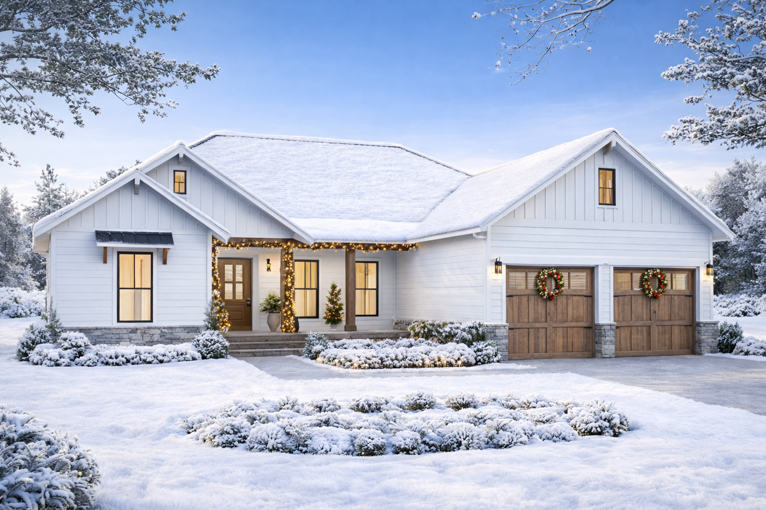 An attached two-car garage provides sheltered parking, storage, and functional convenience without detracting from the home’s clean architectural profile. 2