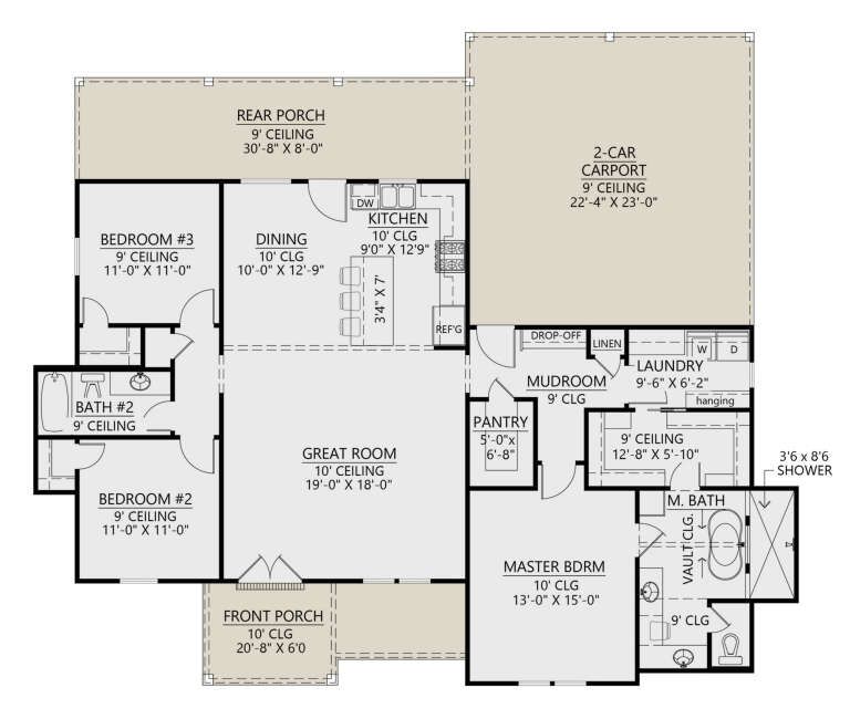 With two full bathrooms, this plan supports daily routines smoothly without crowding or congestion. 19 The bathrooms are positioned to serve both private bedrooms and shared living areas effectively, making the home practical for everyday use and overnight guests alike. 20