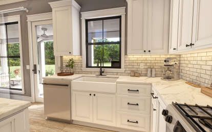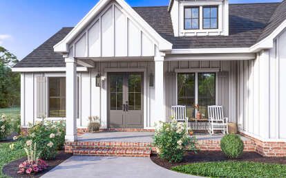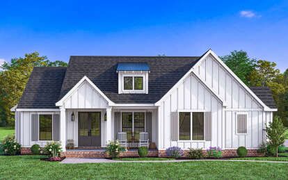 The exterior embraces modern farmhouse simplicity with clean lines, balanced proportions, and a welcoming presence that feels instantly familiar. 1 A classic gabled roofline and thoughtfully placed windows give the home timeless appeal, while subtle detailing keeps the look fresh and contemporary. 2 This is the kind of house that feels right at home in both rural settings and suburban neighborhoods. 3