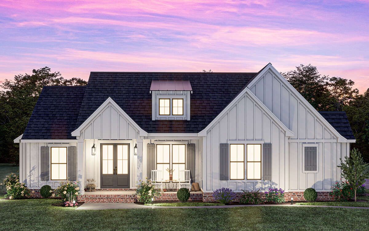 - Modern farmhouse curb appeal with timeless, welcoming warmth.