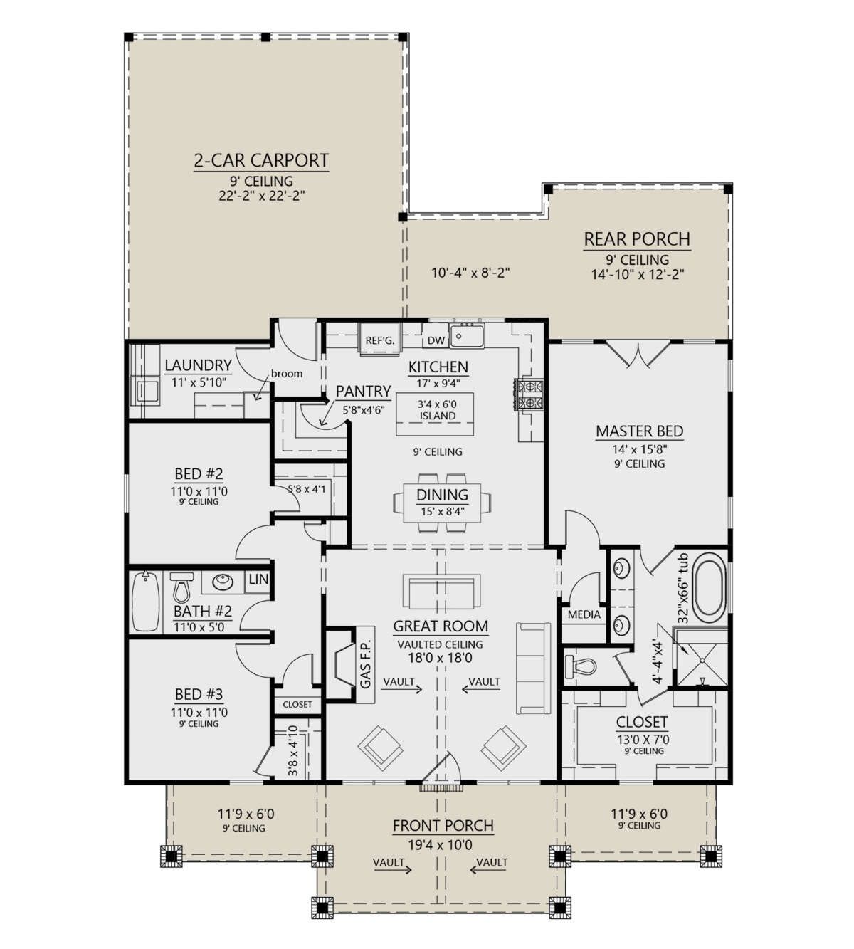 This modern farmhouse plan delivers an excellent mix of style, comfort, and practical living. With its vaulted great room, split-bedroom layout, spacious porches, and efficient floor plan, it is a strong choice for building a cozy and functional family home.“`12