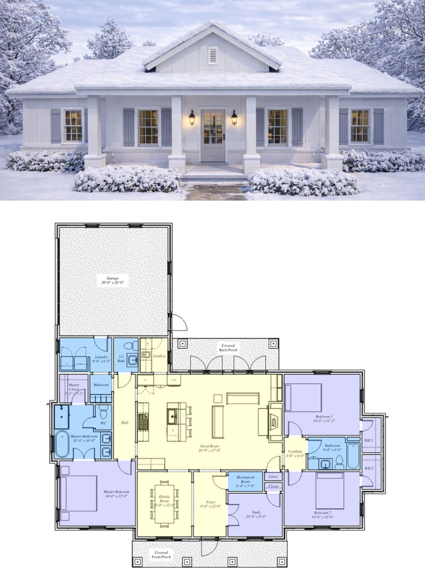 This modern farmhouse plan offers a perfect blend of flexibility, efficiency, and timeless style. Its adaptable layout, comfortable living spaces, and practical features make it an excellent choice for homeowners seeking a functional and attractive single-story home.
